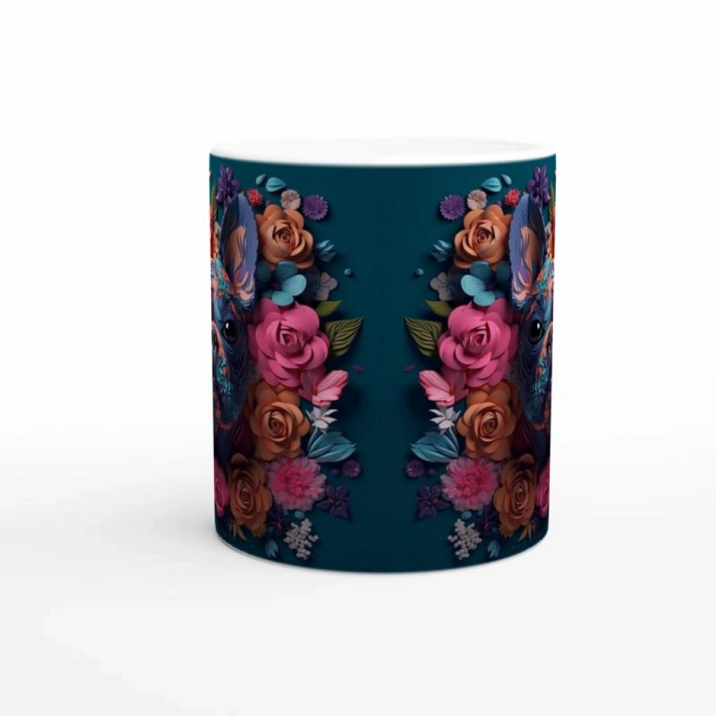 Çiçek Desenli Fransız Bulldog Temalı Baskılı Kupa Bardak