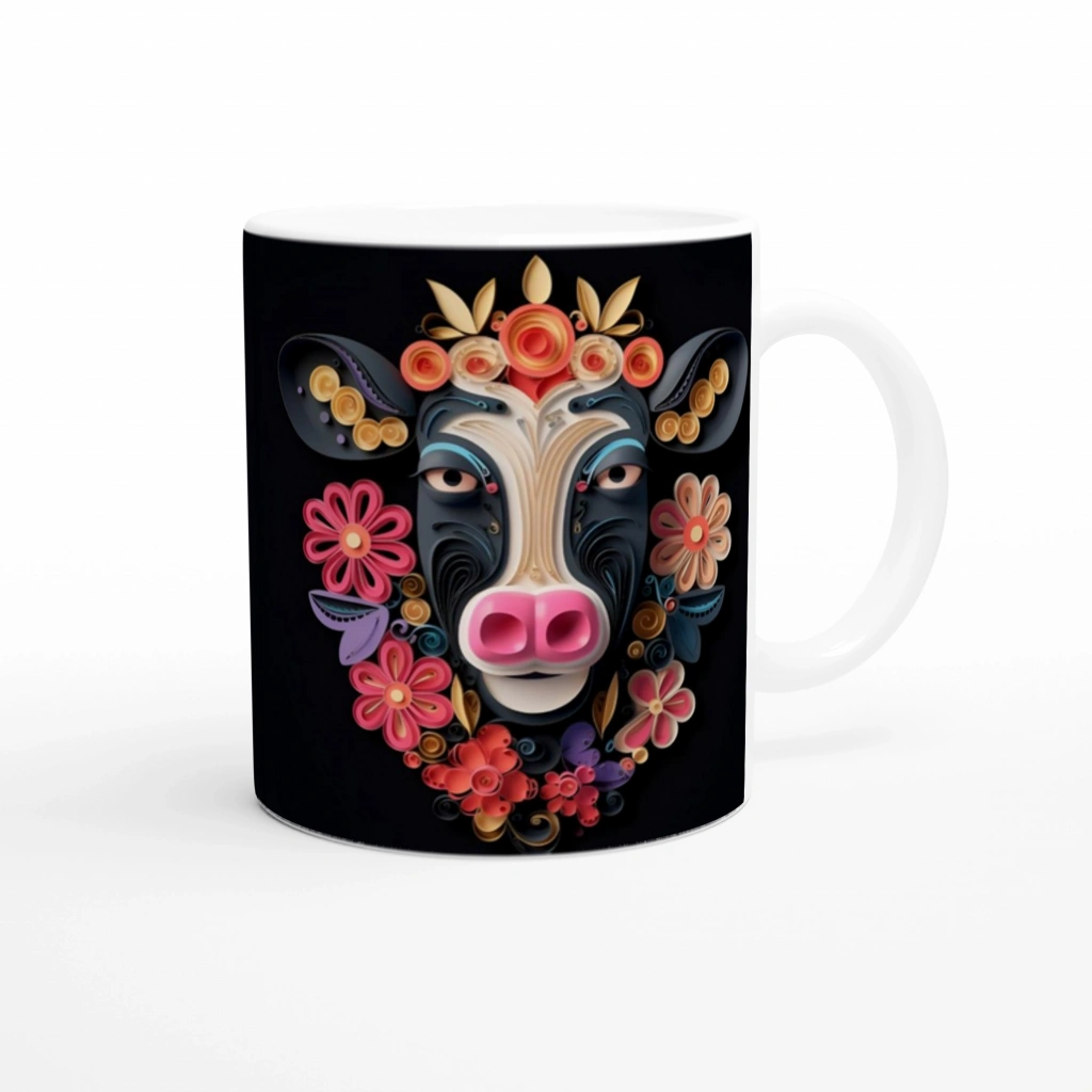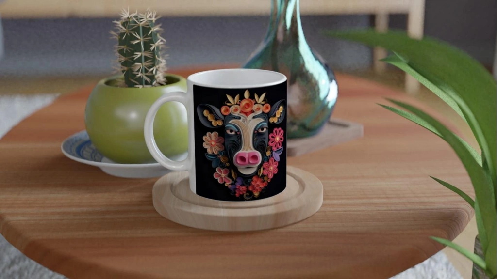 Kahve keyfinize neşe katacak bir kupa arıyorsanız bu çiçek taçlı inek tasarımı tam size göre!