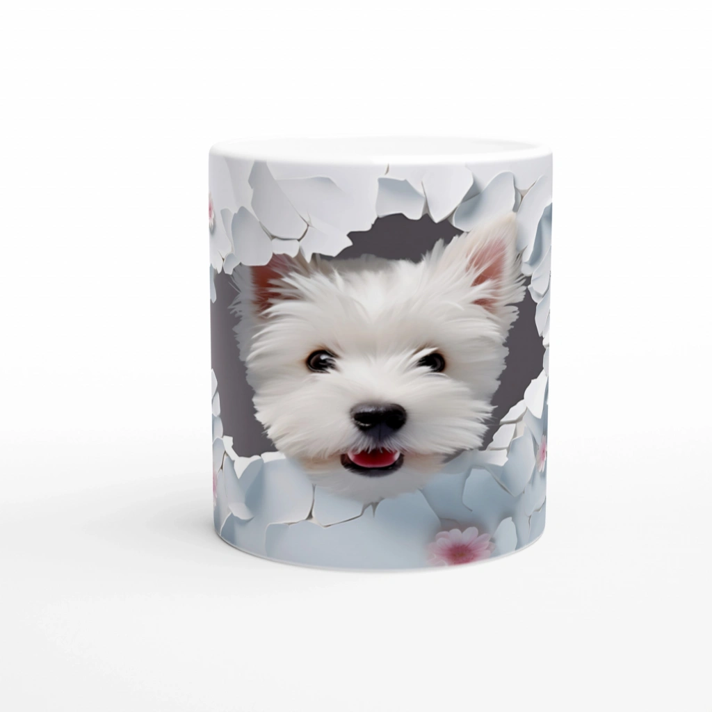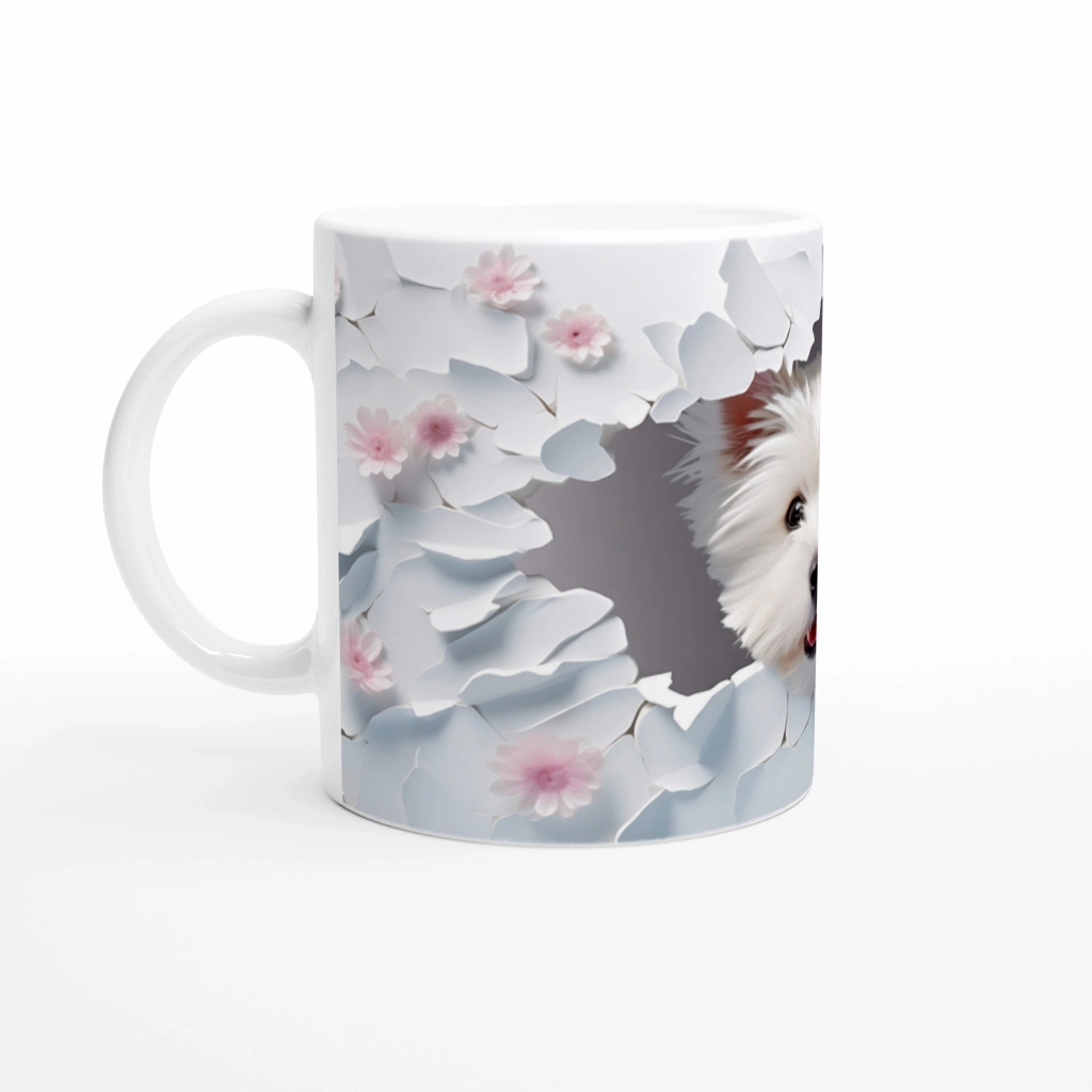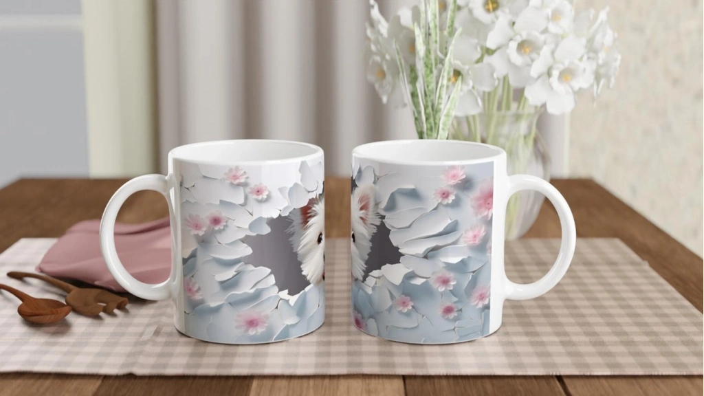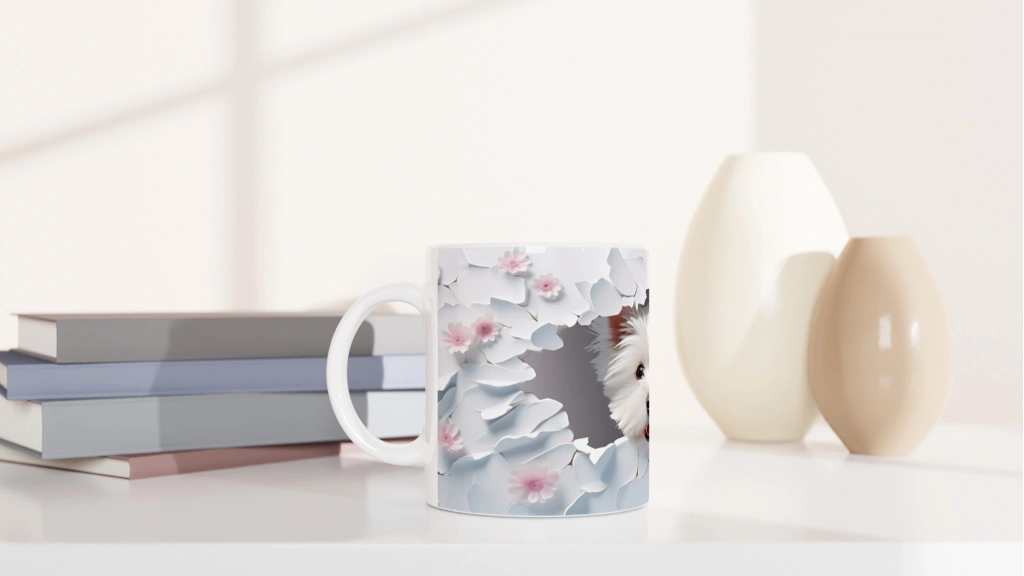 Çiçekler Arasında Beliren Beyaz Terrier Temalı Baskılı Kupa Bardak, baharın tazeliğini ve dost bir bakışı aynı anda sunuyor. Sevimli beyaz terrier, her yudumda içinizi ısıtacak ve güne keyifli bir başlangıç yapmanızı sağlayacak.
