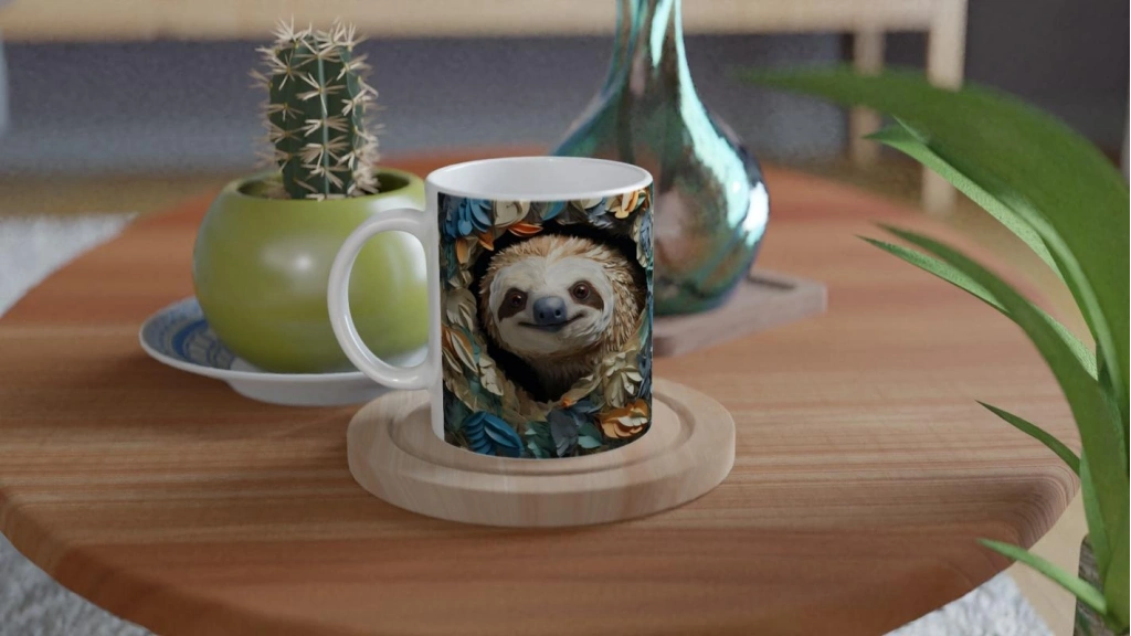Çiçekler Arasında Gülümseyen Tembel Hayvan Temalı Baskılı Kupa Bardak, neşeli ruhu ve detaylı tasarımıyla her yudumda içten bir tebessüm uyandırır. Sıra dışı ve eğlenceli bir hediye alternatifi arayanlar için mükemmel.