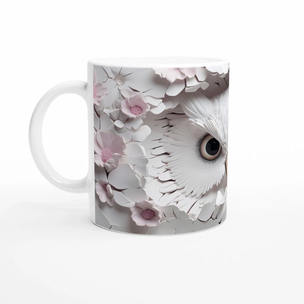 Çiçekler Arasında Saklanan Beyaz Baykuş Baskılı Kupa Bardak, detaylı tüy dokusu ve yumuşak pembe tonlardaki çiçeklerle her anınıza estetik bir dokunuş katıyor. Göz alıcı bu tasarım, kahve keyfinizi görsel bir şölene dönüştürüyor.