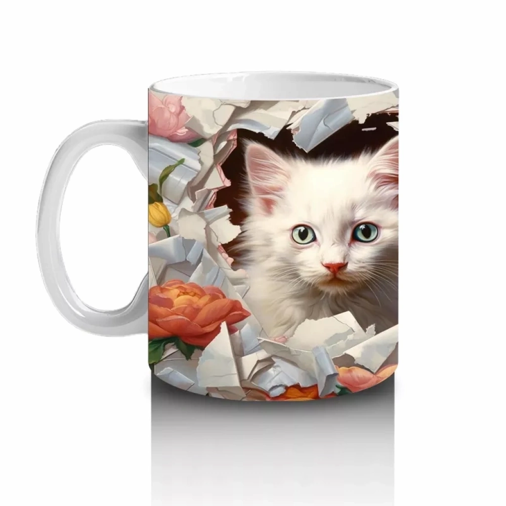 Çiçekler Arasında Yavru Kediler – Baskılı Kahve Kupası