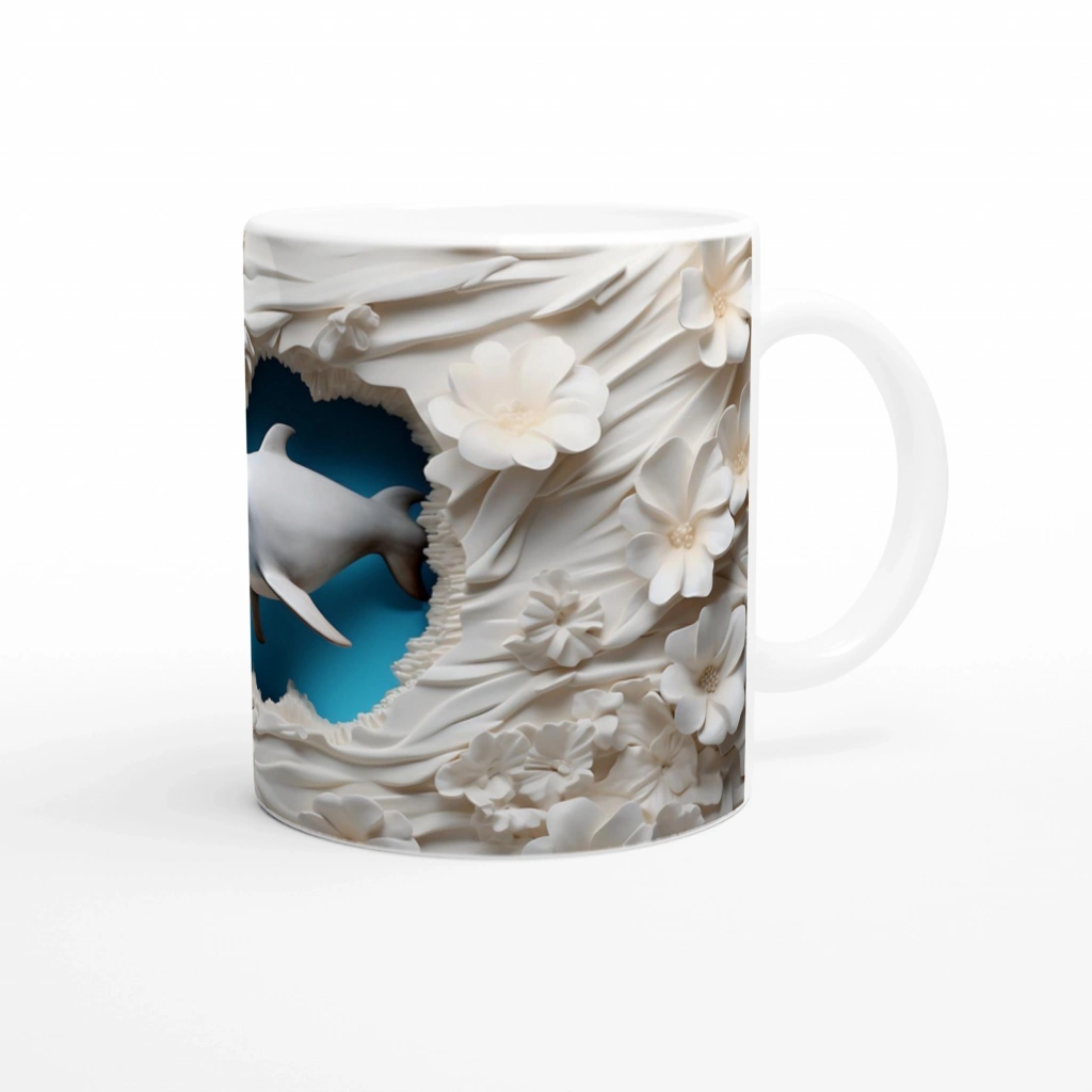 Çiçeklerin Arasında Yüzen Yunus Temalı Baskılı Kupa Bardak