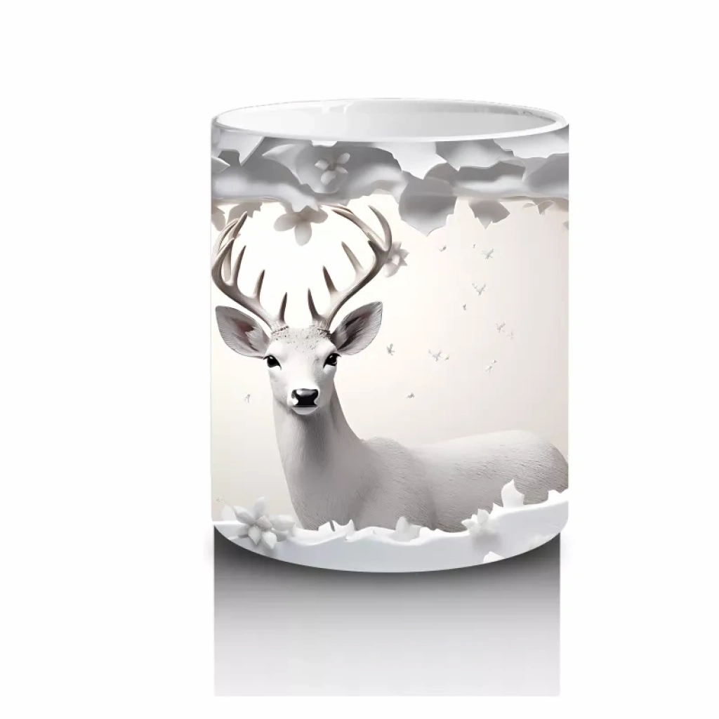 Gümüş tonlarında zarif bir görünüme sahip bu geyik, rengârenk çiçeklerle tamamlanarak sofistike bir hava sunuyor. Şıklığı ve doğallığı bir arada arayanlar için göz alıcı bir kupa tasarımı.