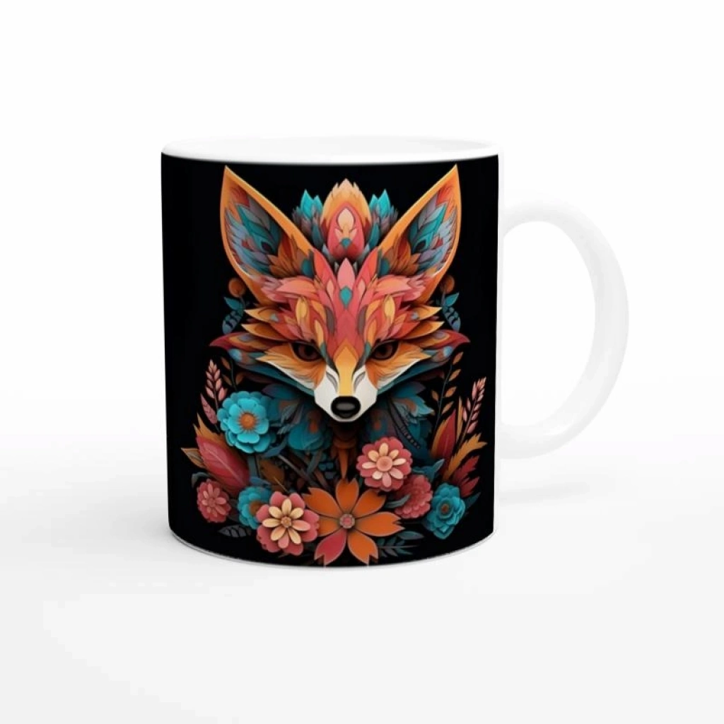 Güçlü bakışlarıyla dikkat çeken tilki figürü, çiçek detaylarıyla zarif bir denge yakalıyor.