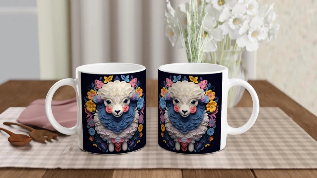 Çiçekli Tatlı Kuzu Baskılı Kupa Bardak, pastel tonlarla işlenmiş kuzu figürü ve etrafını saran renkli çiçek detaylarıyla göz alıcı bir tasarım sunar. Hem çocuklara hem de doğa temalı dekor seven yetişkinlere hitap eden bu kupa, sıcak içecek molalarınıza mutluluk katar.