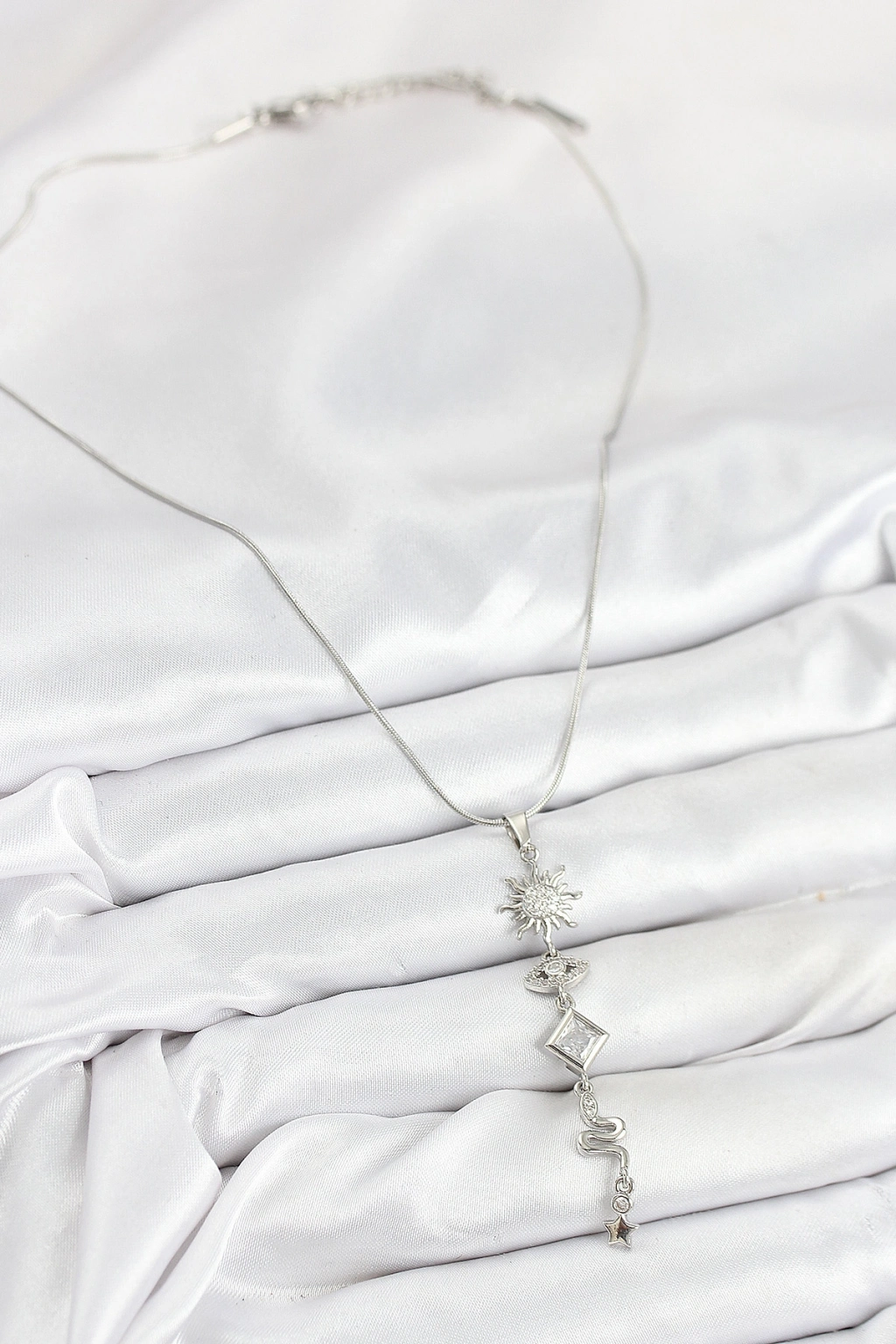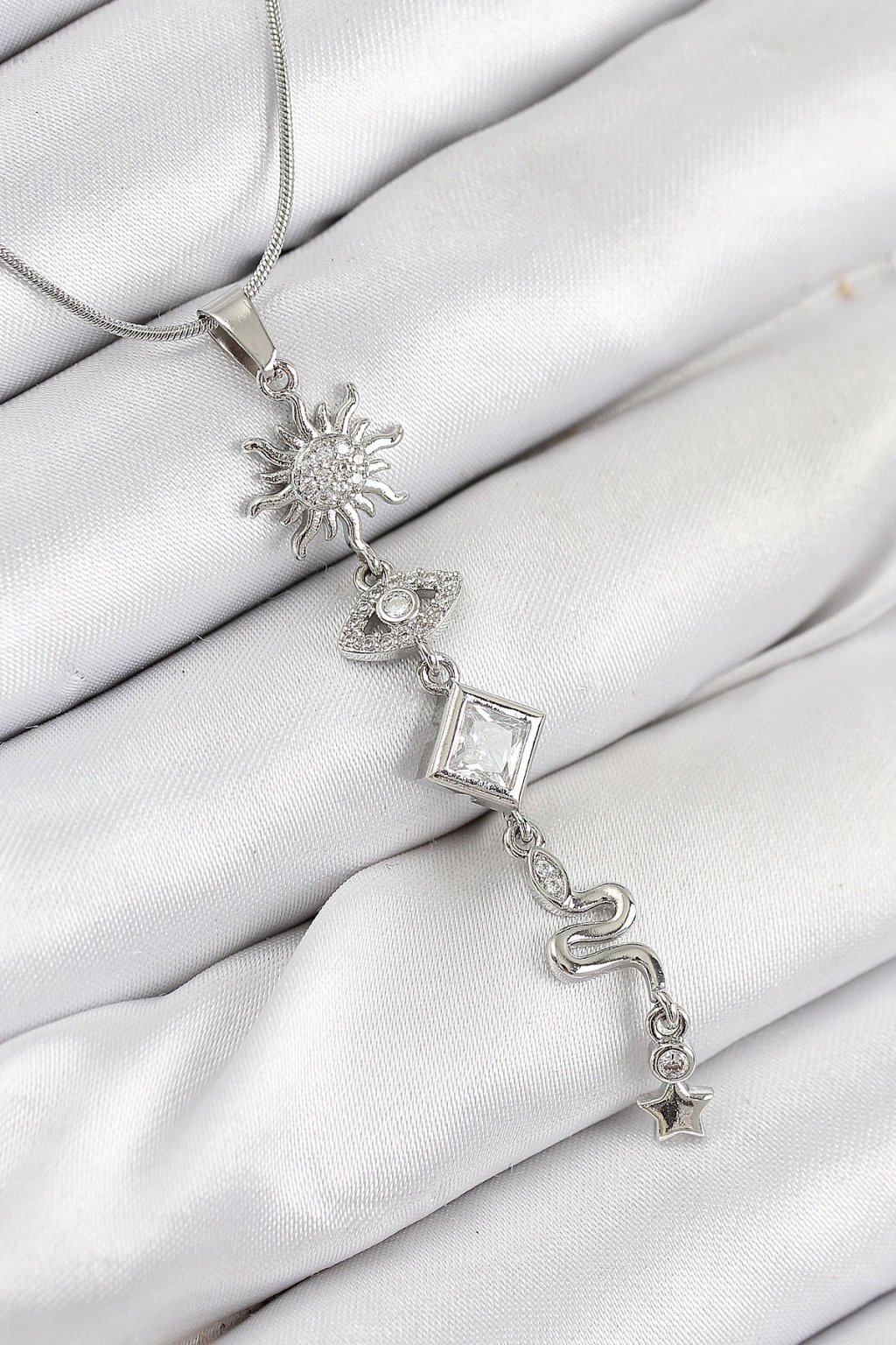 316L Çelik Zirkon Taşlı Güneş Ve Ay Enerji Model Gümüş Renk Kadın Kolye