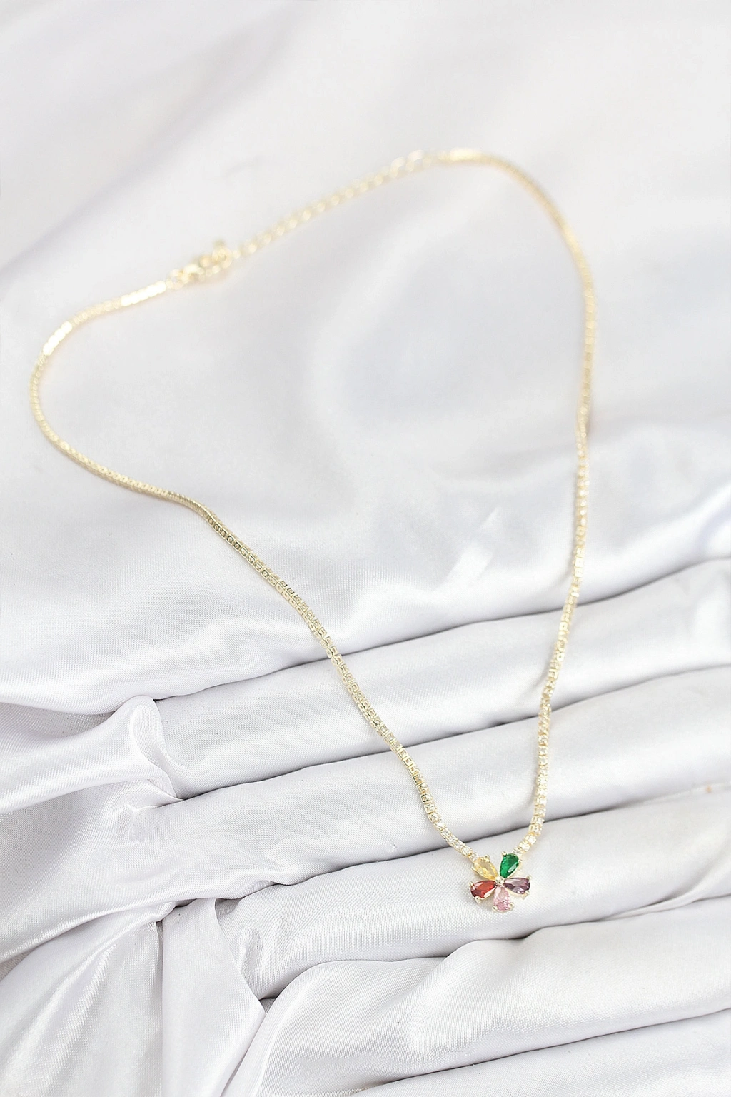 Pirinç Zirkon Taşlı Su Yolu Asorti Çiçek Model Gold Renk Kadın Kolye