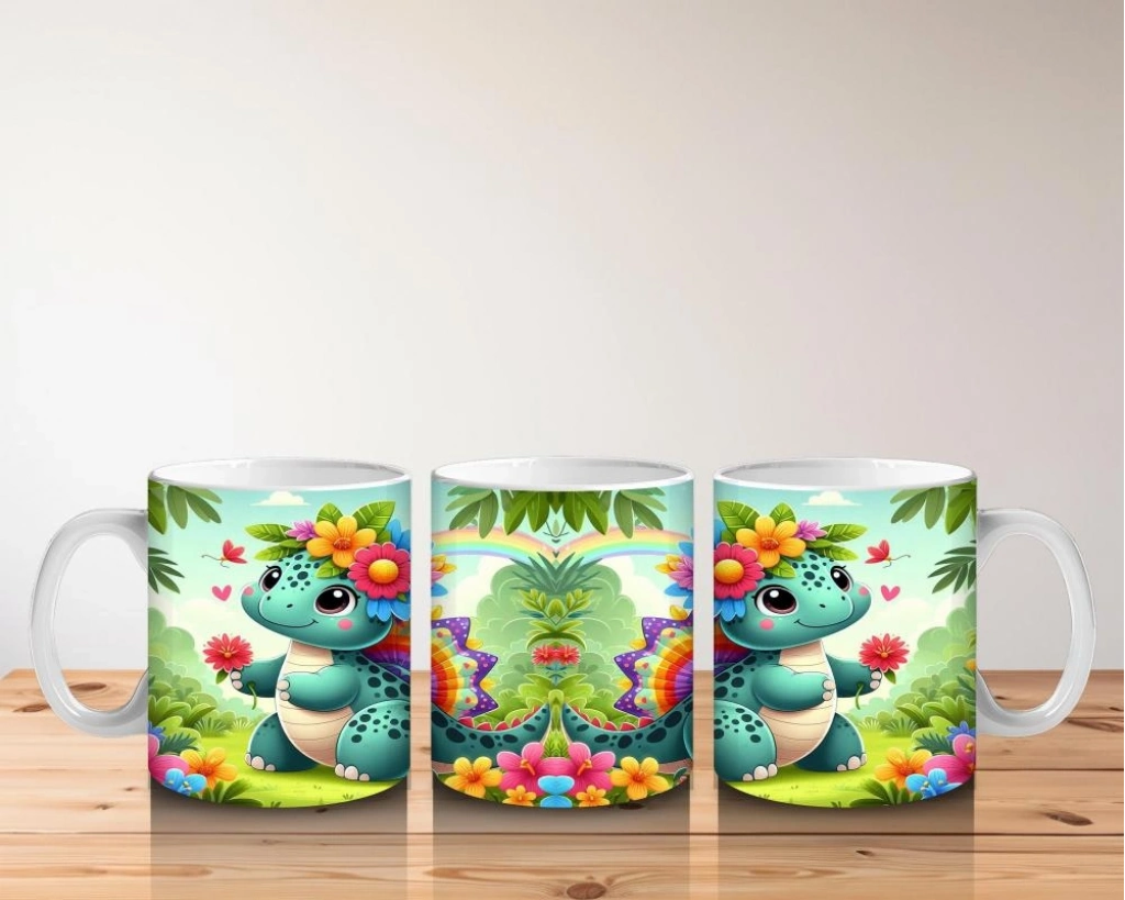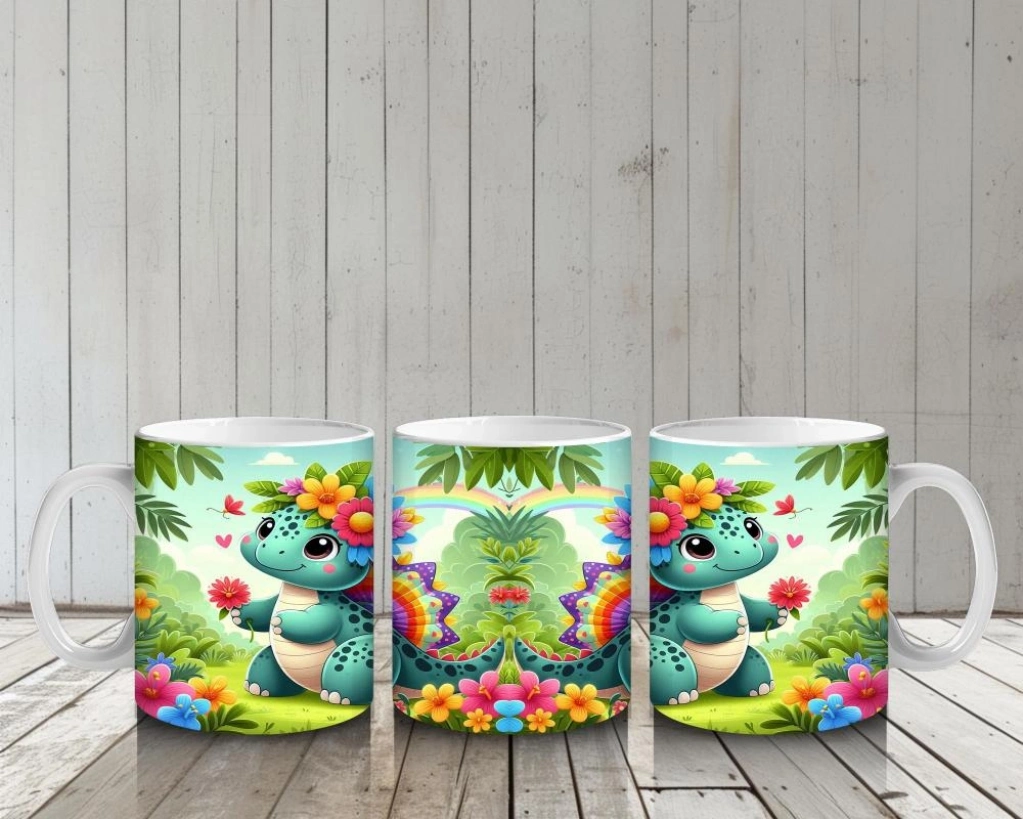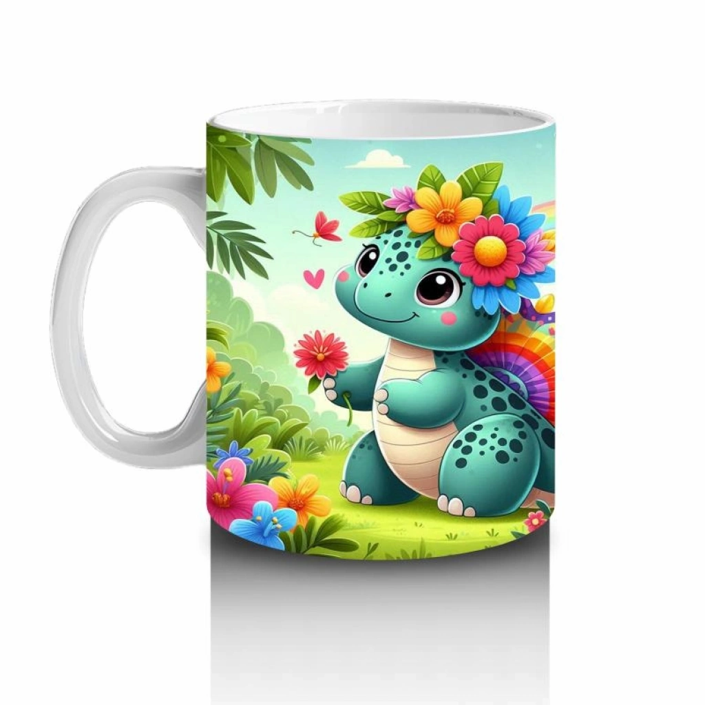 Çocuklara Sütdiren Çiçek Bahçesi Dinozoru Kupa Bardak