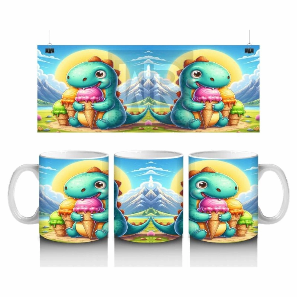 Kocaman bir dondurmayla mutlu bir dinozor… Bu tatlı tasarım, süt saatini çocuklar için serin ve neşeli bir keyfe dönüştürüyor.