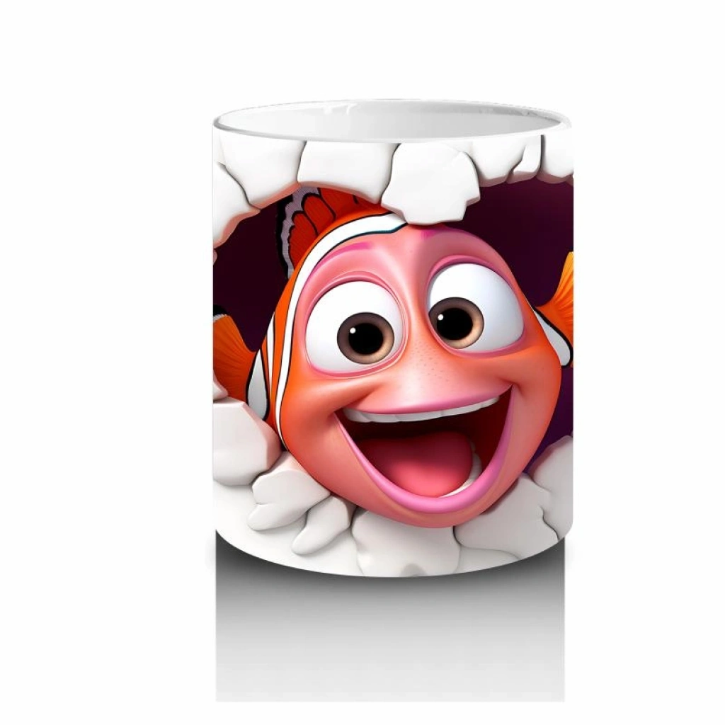 Çocuklara Sütü Sevdiren Duvarı Delip Bakan Renkli Palyaço Balığı Kupa Bardak