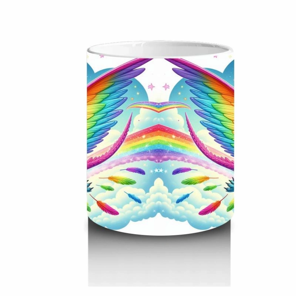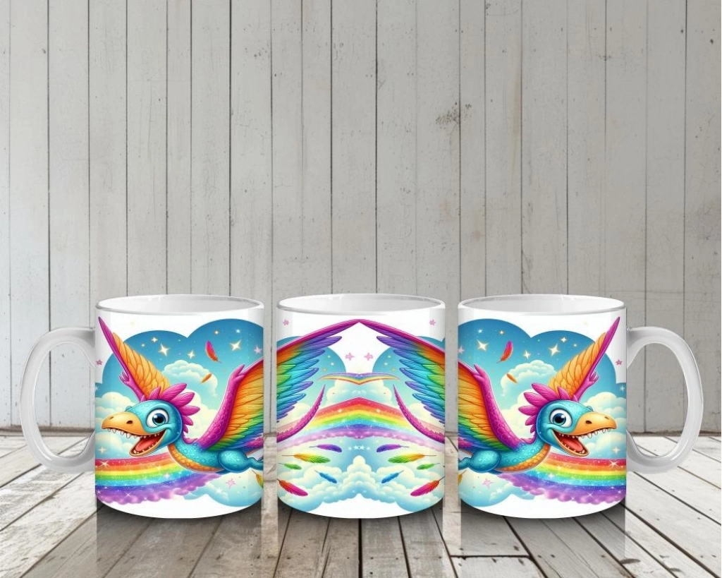 Çocuklara Sütü Sevdiren Gökkuşağı Kanatlı Dinozor Desenli Kupa Bardak