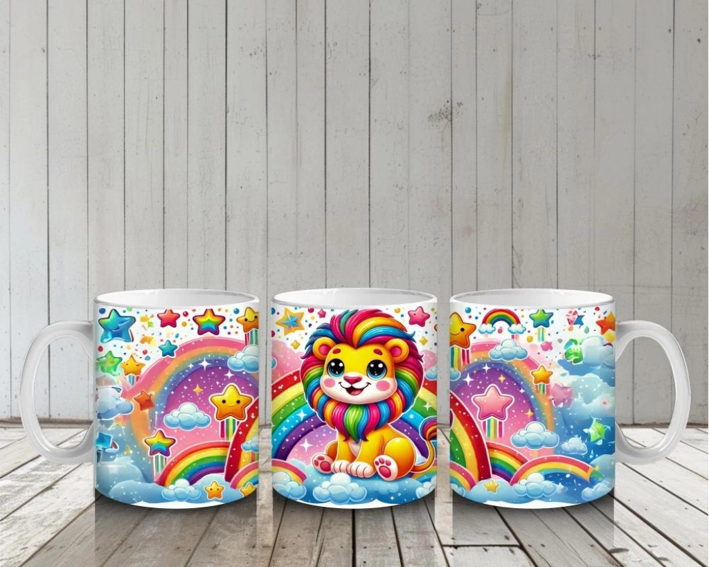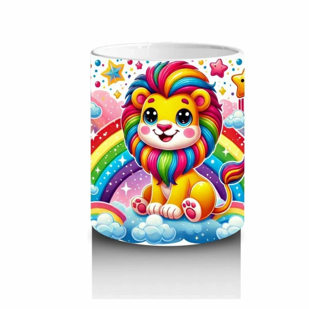 Çocuklara Sütü Sevdiren Gökkuşağı Yelesiyle Sevimli Aslan Desenli Kupa Bardak
