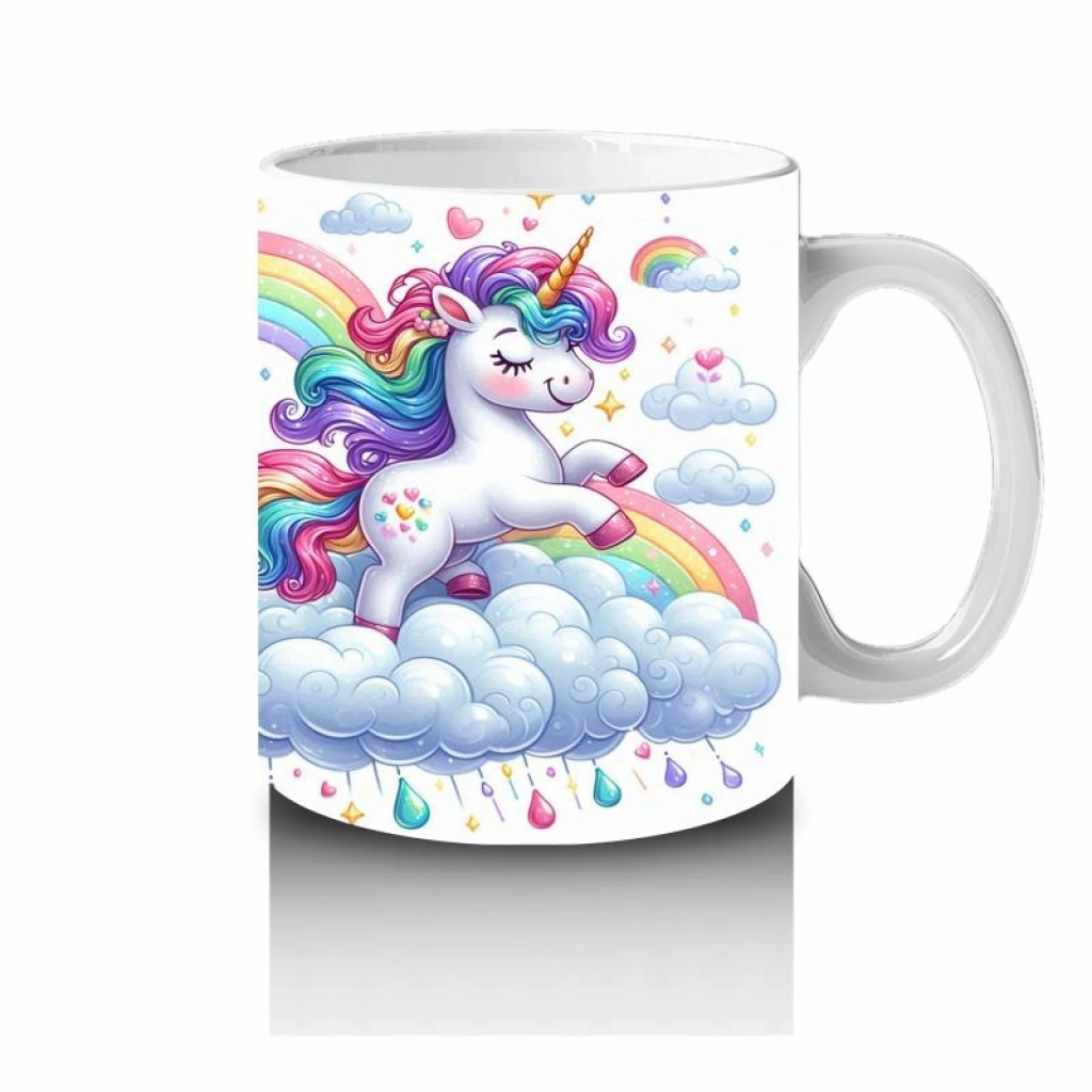 Çocuklara Sütü Sevdiren Gökkuşağında Koşan Sevimli Unicorn Desenli Kupa Bardak