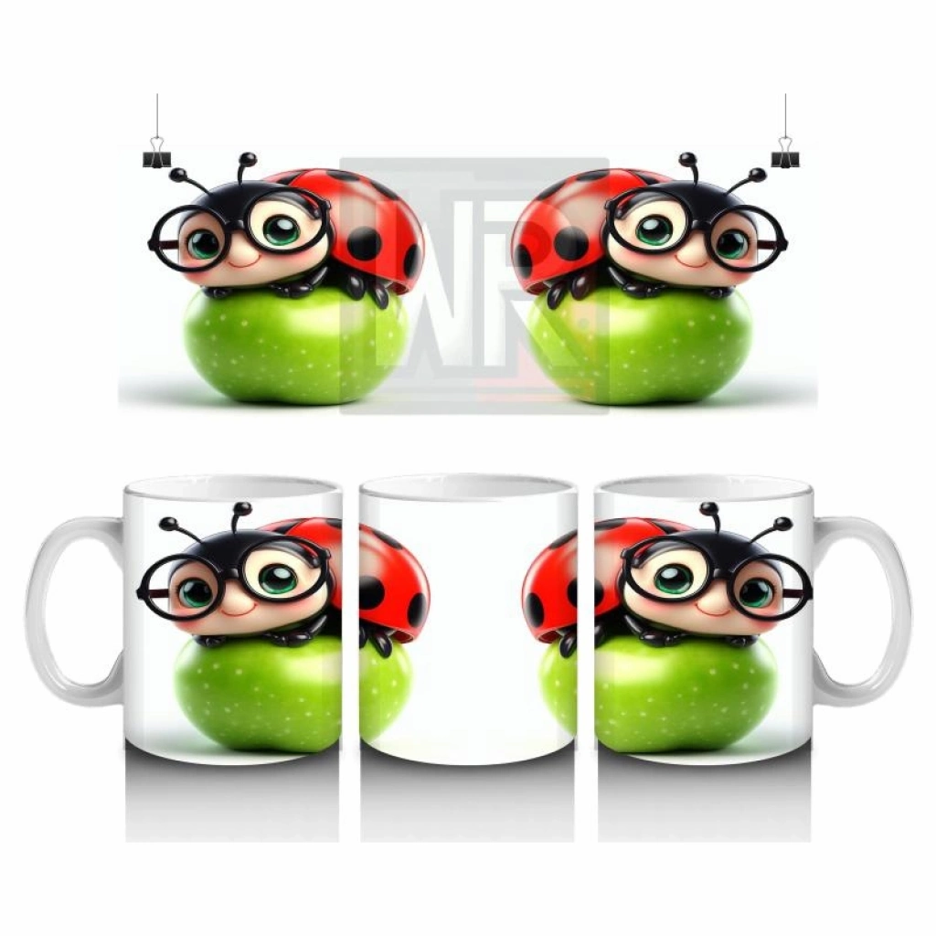 Çocuklara Sütü Sevdiren Gözlüklü Uğur Böceği ve Elma Desenli Kupa Bardak