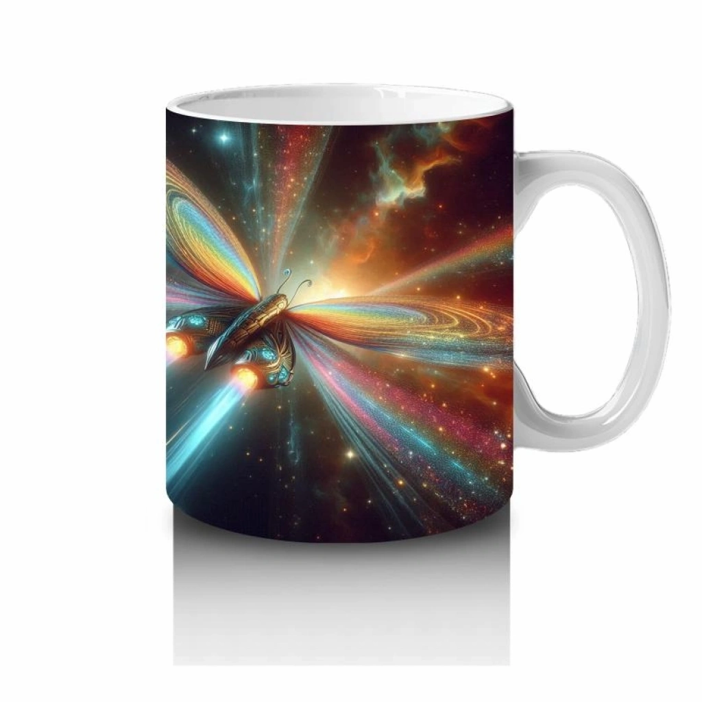 Çocuklara Sütü Sevdiren Işık Kanatlı Uzay Kelebeği Desenli Kupa Bardak
