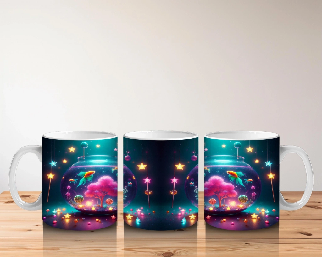 Çocuklara Sütü Sevdiren Işıltılı Renkli Balık Akvaryumu Desenli Kupa Bardak