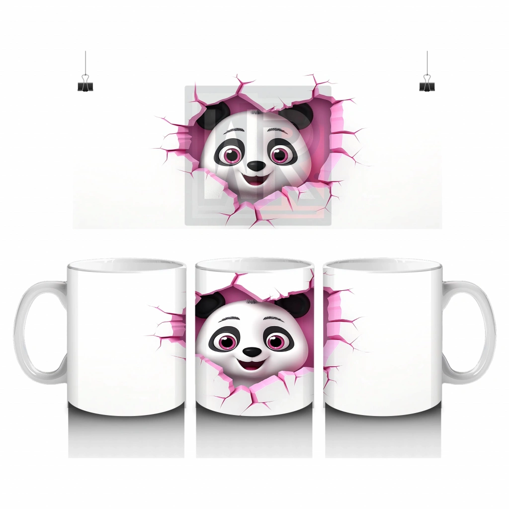 Çocuklara Sütü Sevdiren Kalp Çerçevesinden Bakan Meraklı Panda Kupa Bardak