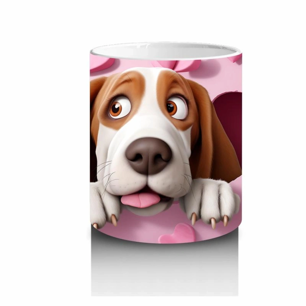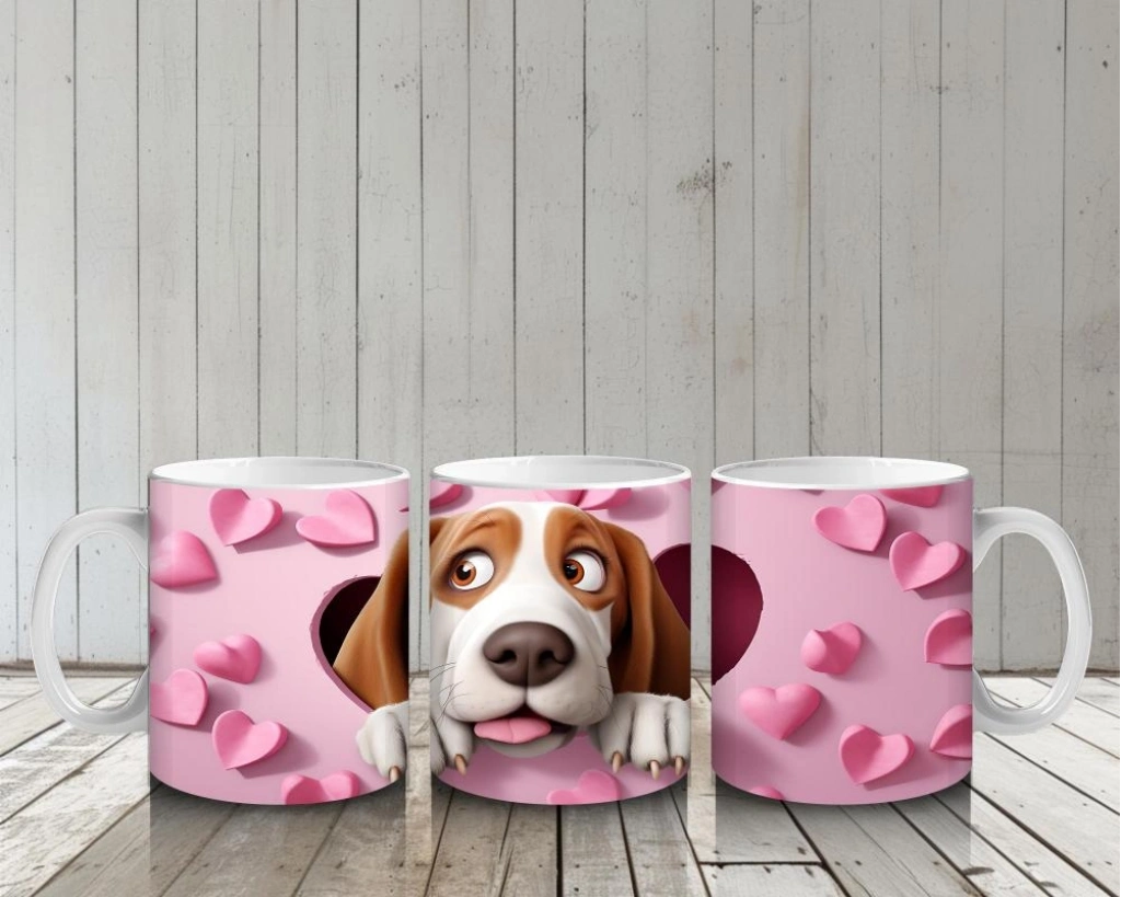 Çocuklara Sütü Sevdiren Kalp Duvarından Bakan Meraklı Köpek Kupa Bardak