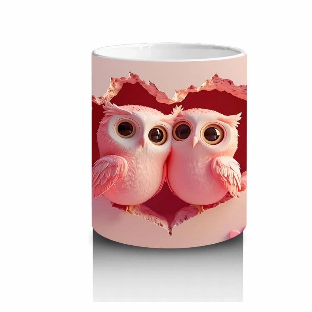 Çocuklara Sütü Sevdiren Kırık Kalpten Bakan Sevimli Baykuş Çifti Kupa Bardak