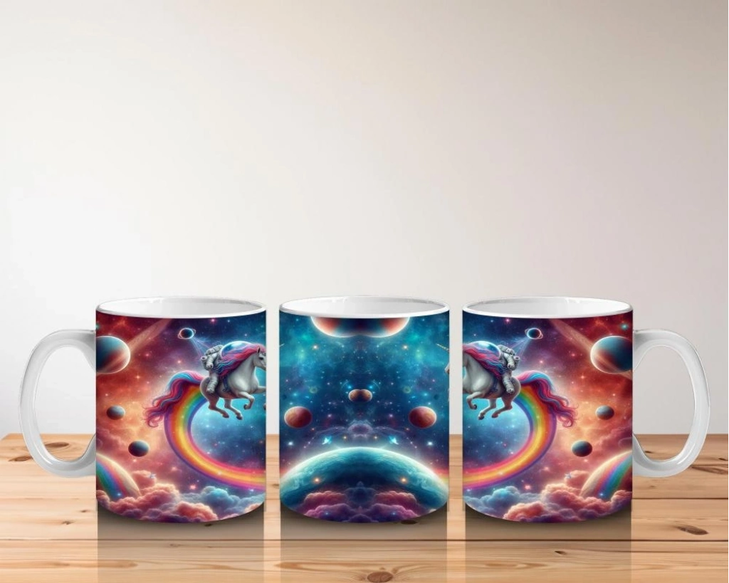 Çocuklara Sütü Sevdiren Kozmik Gökkuşağı Unicorn Yolculuğu Kupa Bardak