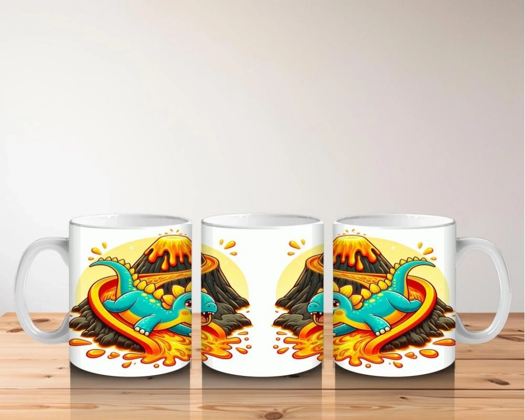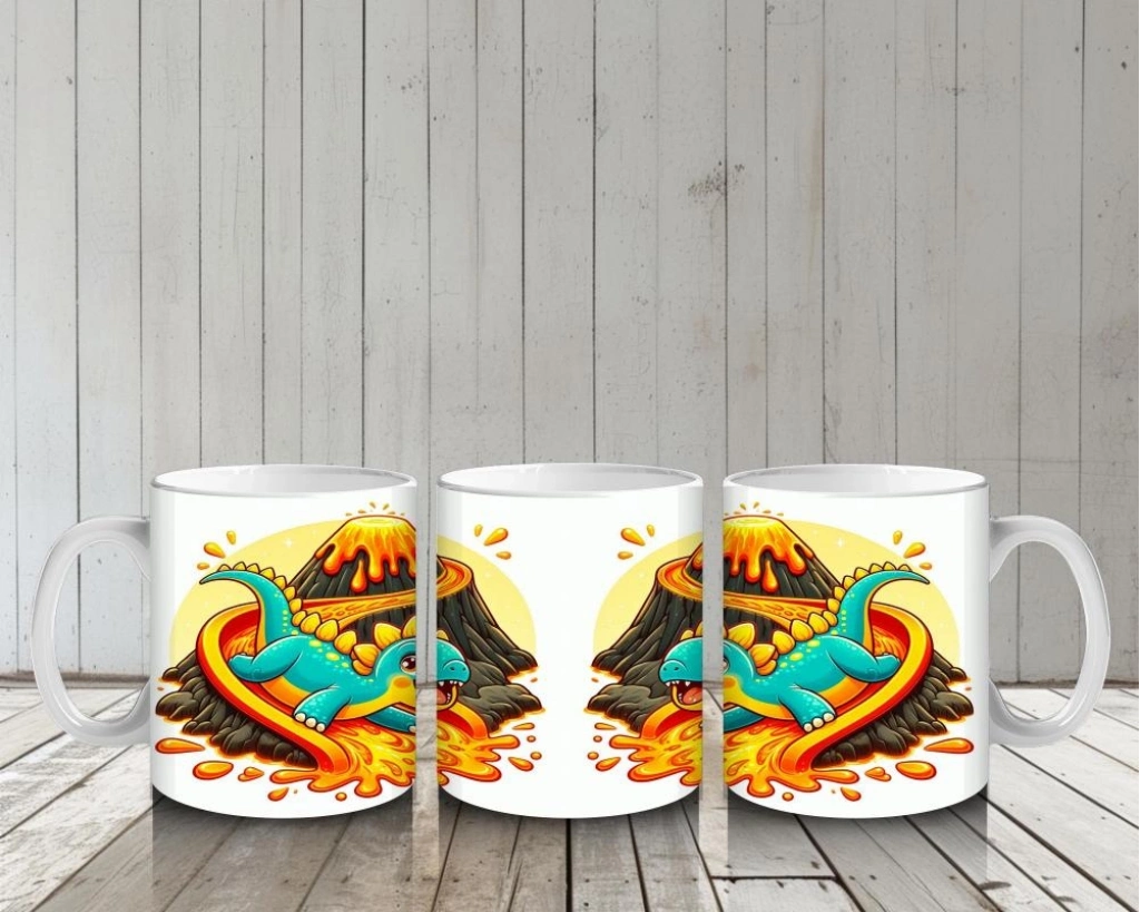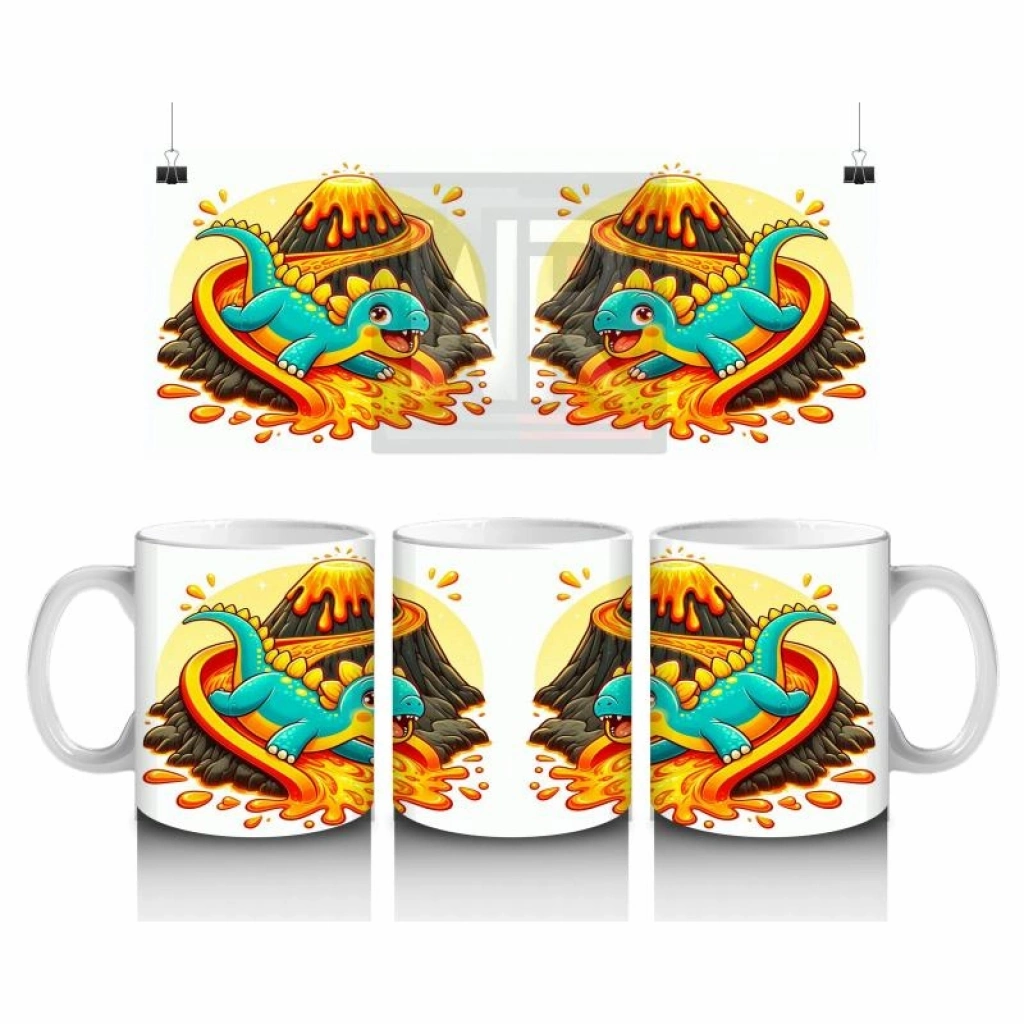 Çocuklara Sütü Sevdiren Lav Kaydırağında Kayarken Neşelenen Dinozor Desenli Kupa Bardak