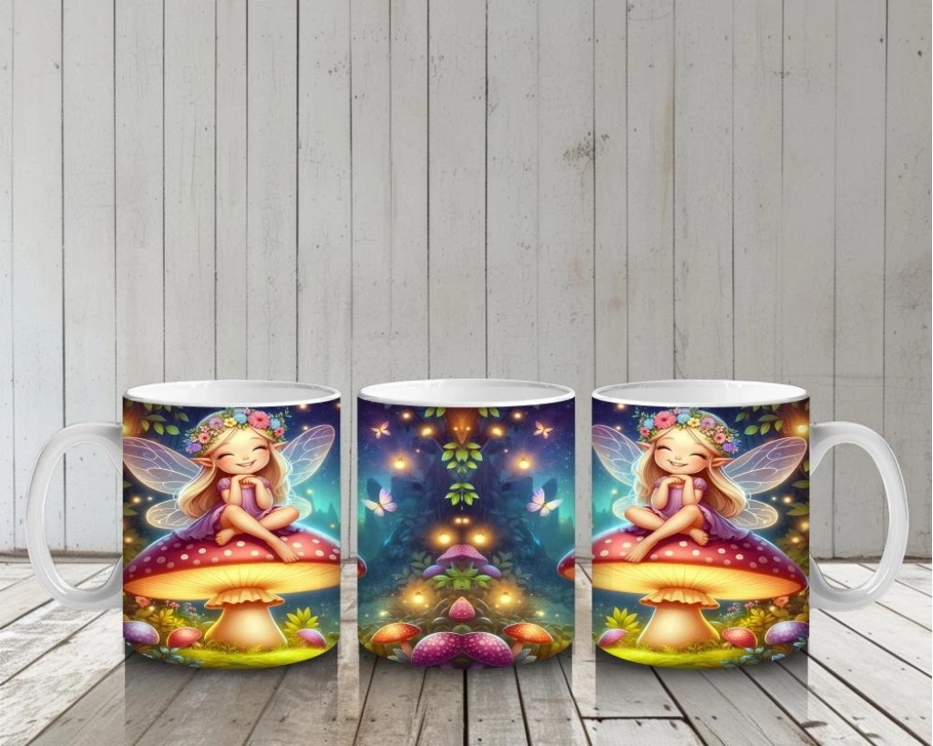 Çocuklara Sütü Sevdiren Mantar Üstünde Oturan Çiçek Taçlı Peri Desenli Kupa Bardak