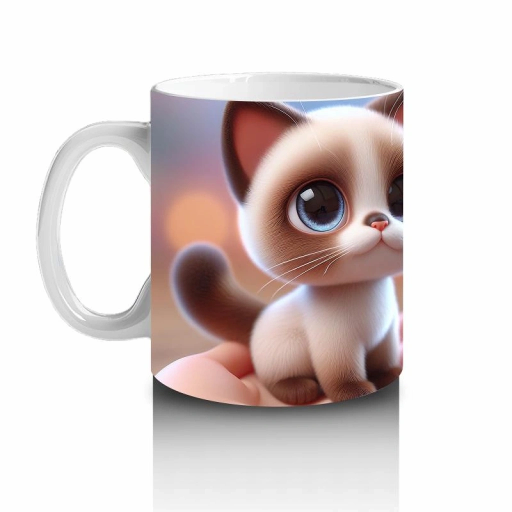 Çocuklara Sütü Sevdiren Mavi Gözlü Tatlı Kedi Kupa Bardak