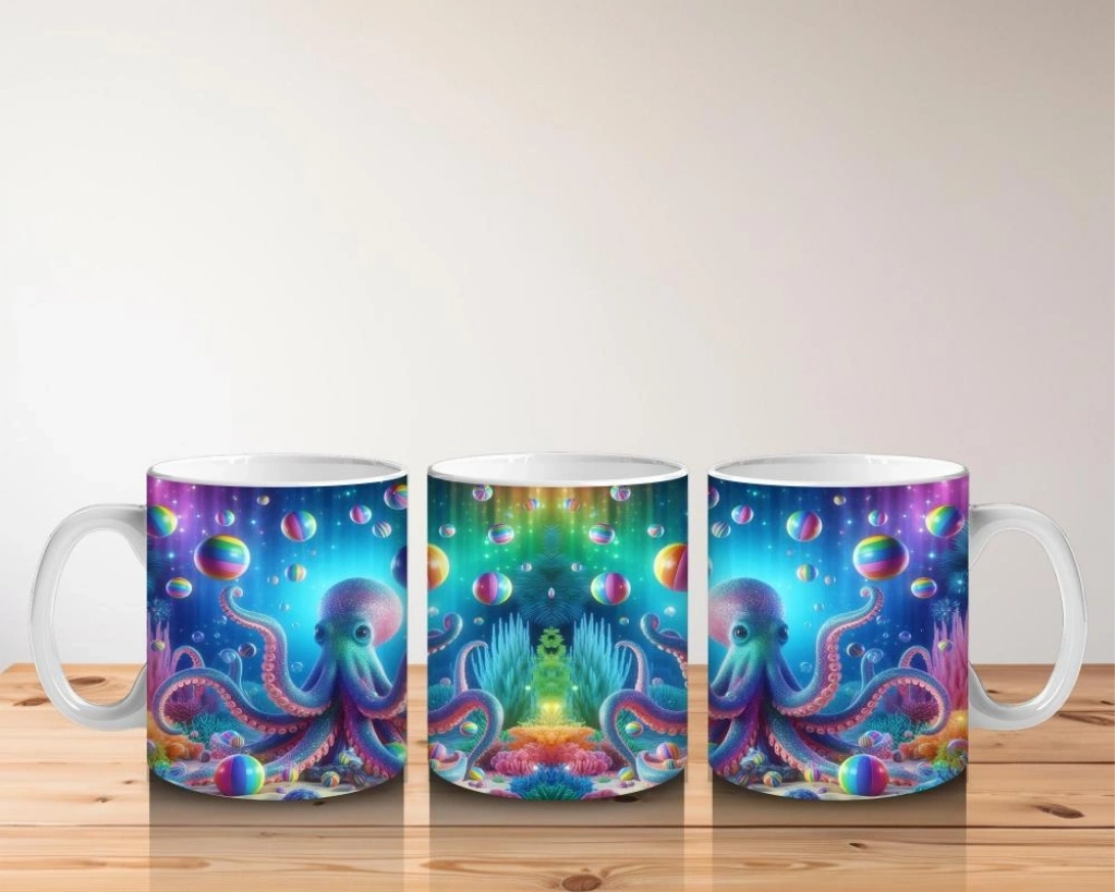 Çocuklara Sütü Sevdiren Neon Ahtapot Karnavalı Kupa Bardak