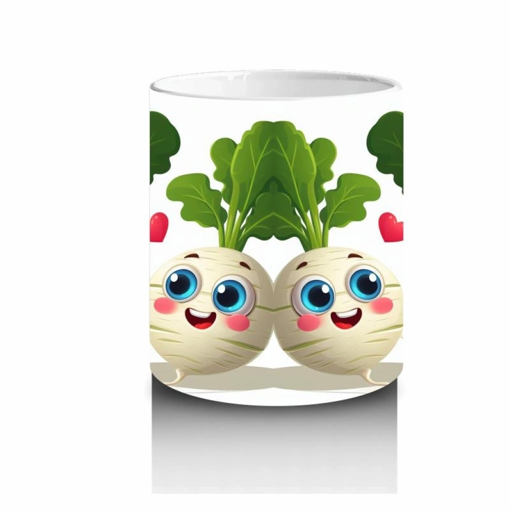 Çocuklara Sütü Sevdiren Neşeli Sebzeler ve Kalpler Desenli Kupa Bardak