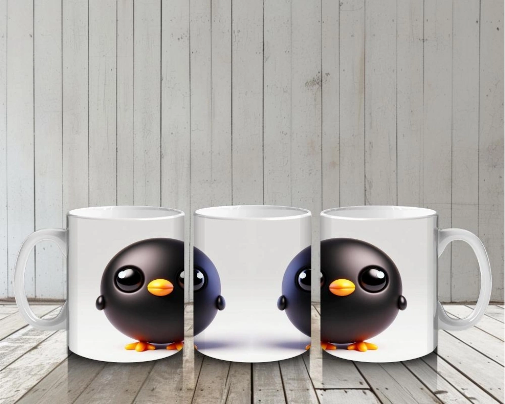 Çocuklara Sütü Sevdiren Neşeli Siyah Kuş Kupa Bardak