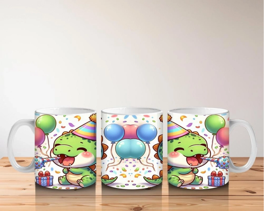 Parti şapkasını takmış, gülümsemesiyle neşe saçan bu sevimli dinozor, süt saatini çocuklar için eğlenceli bir kutlamaya dönüştürüyor.
