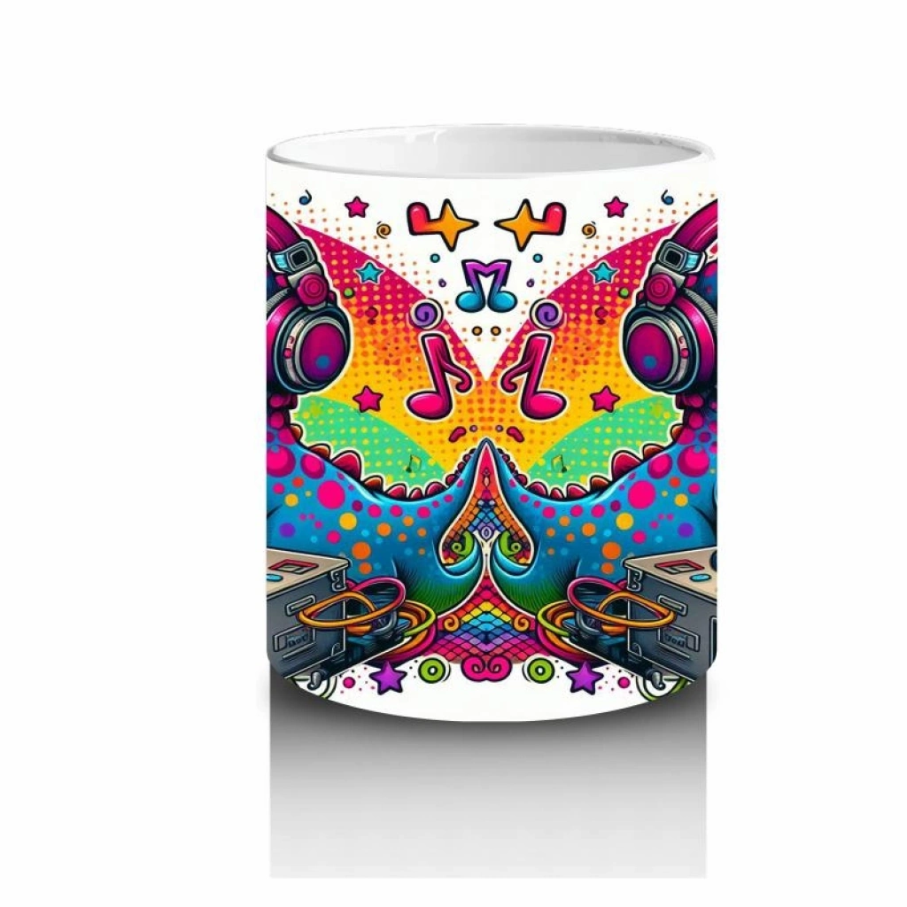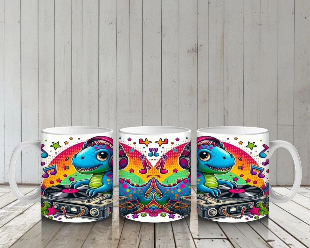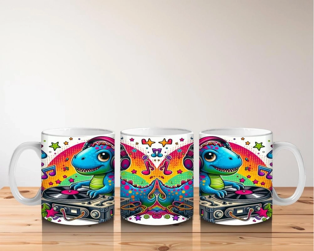 Çocuklara Sütü Sevdiren Renkli DJ Dinozor Desenli Kupa Bardak