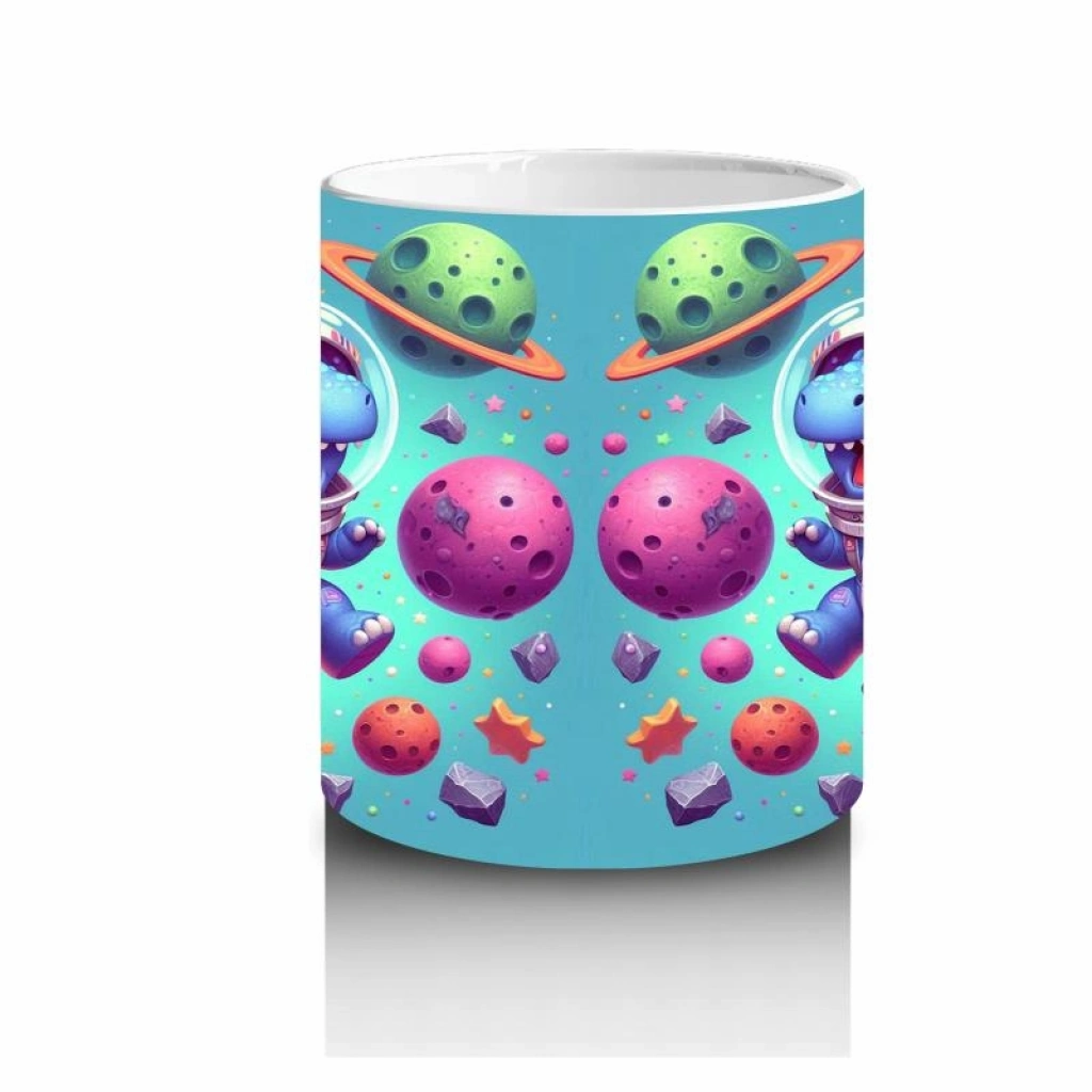 Çocuklara Sütü Sevdiren Roketli Uzay Dinozoru Desenli Kupa Bardak
