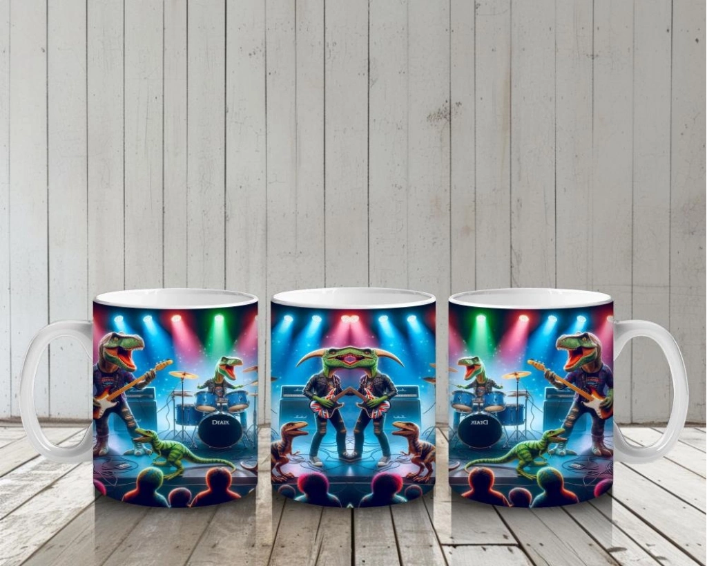Çocuklara Sütü Sevdiren Sahnede Konser Veren Dinozor Rock Grubu Desenli Kupa Bardak