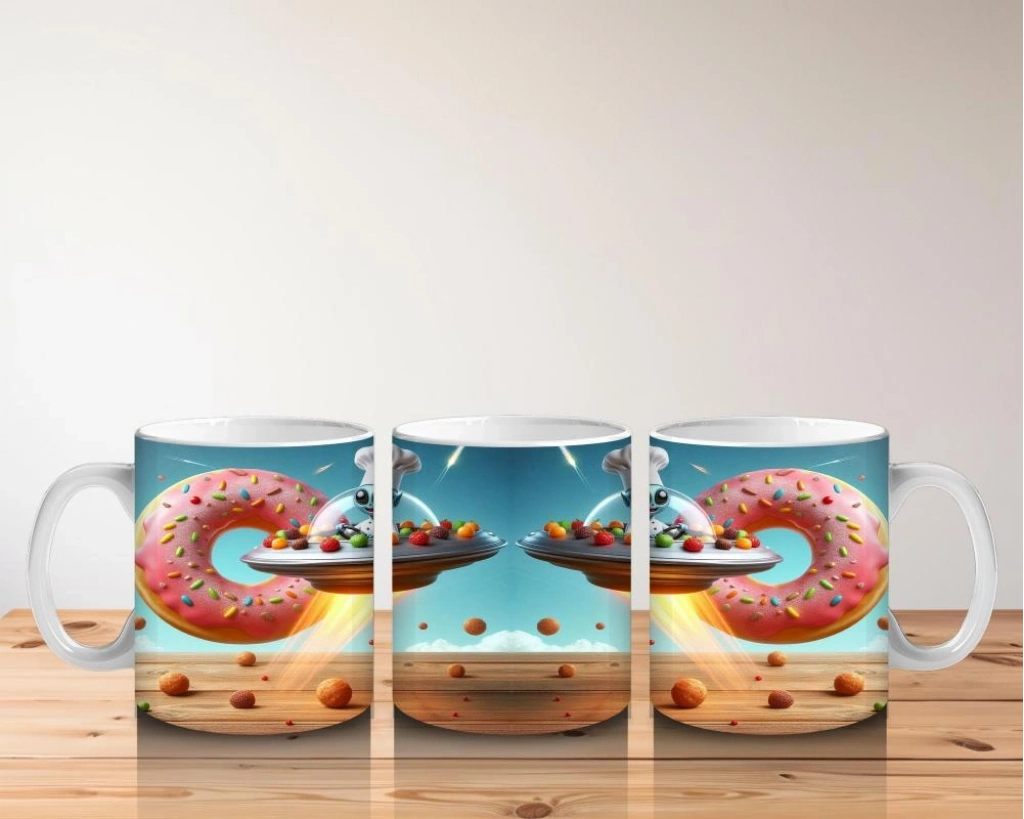 Çocuklara Sütü Sevdiren Uçan Donut ve Şef Fareli Uzay Gemisi Desenli Kupa Bardak