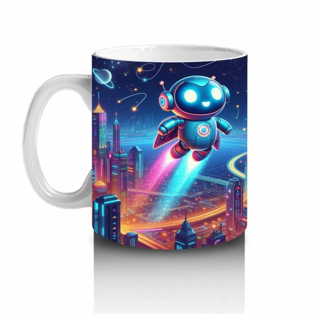 Çocuklara Sütü Sevdiren Uçan Sevimli Robotlar ve Gelecek Şehri Desenli Kupa Bardak