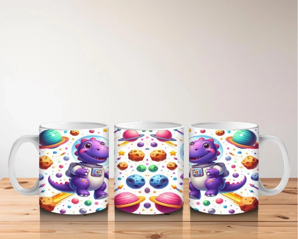 Astronot kıyafetleriyle uzayda süzülen sevimli bir dinozor… Bu keşif dolu tasarımla süt içmek, minikler için yıldızlara uzanan bir macera!