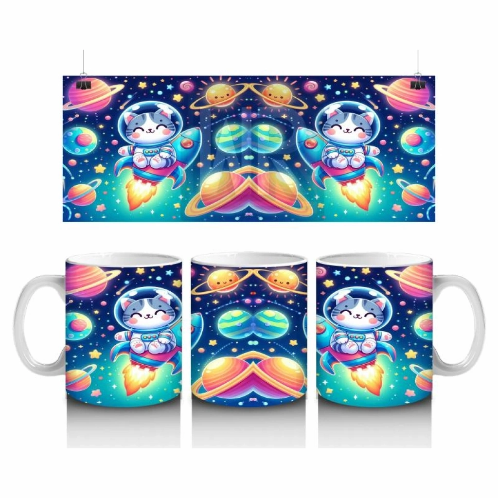 Çocuklara Sütü Sevdiren Uzay Roketiyle Gezen Sevimli Kedi Desenli Kupa Bardak