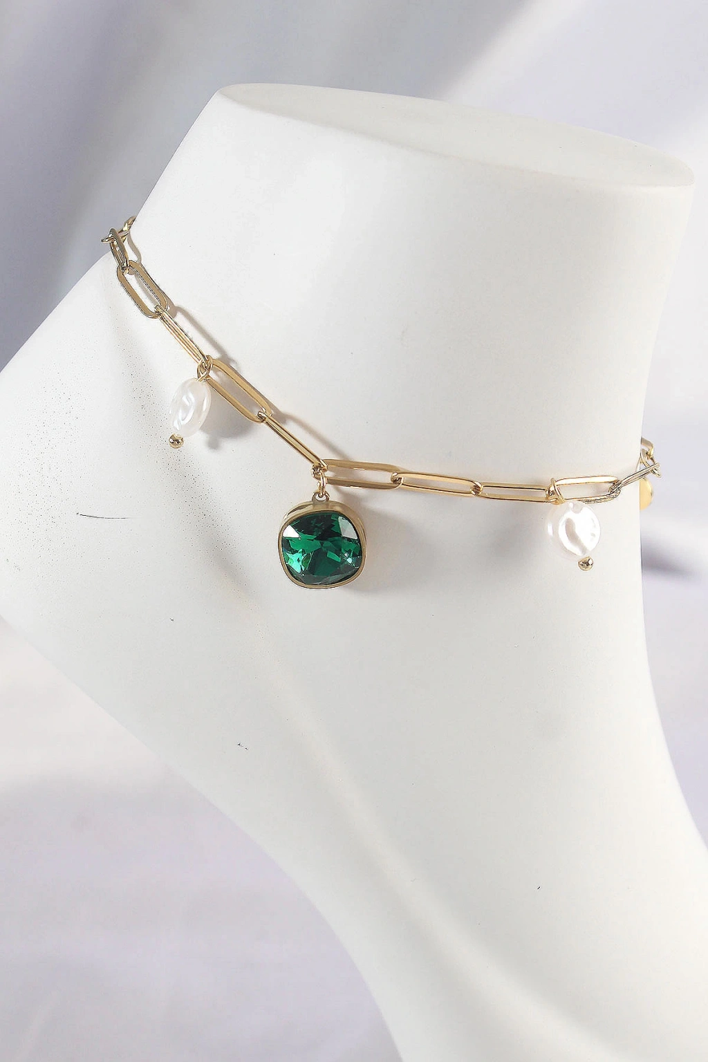 ÇOK SATAN 316L Çelik Gold Renk Zümrüt Taş Tasarımlı Halhal