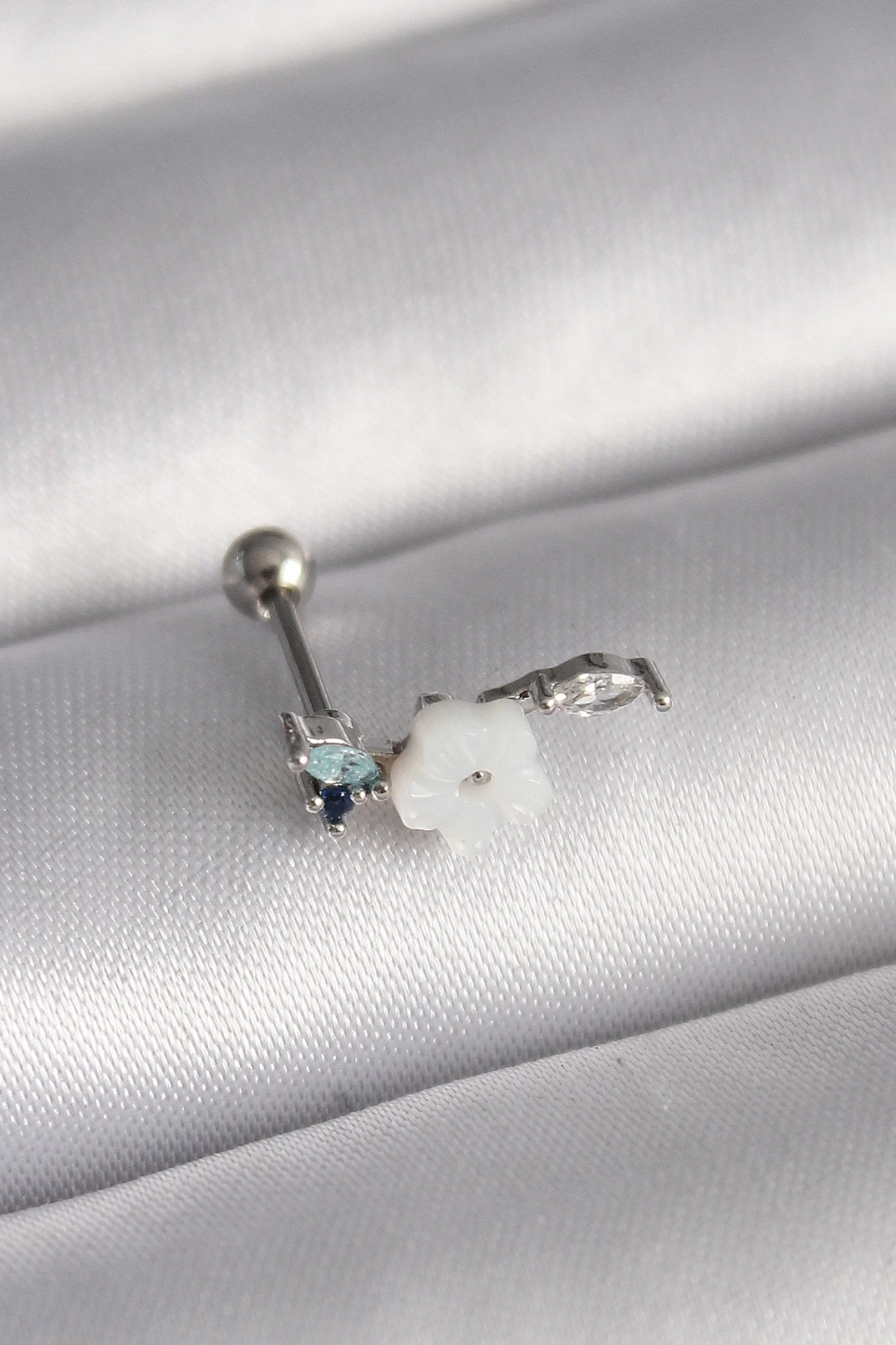 ÇOK SATAN 316L Çelik Gümüş Renk Zirkon Taş Detay Beyaz Çiçek Model Tragus Piercing