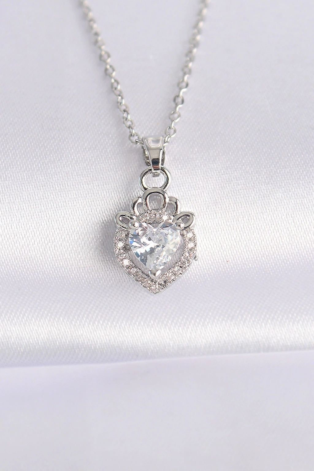 ÇOK SATAN 316L Çelik Zincir Gümüş Zirkon Taşlı Kalpli Kadın Kolye