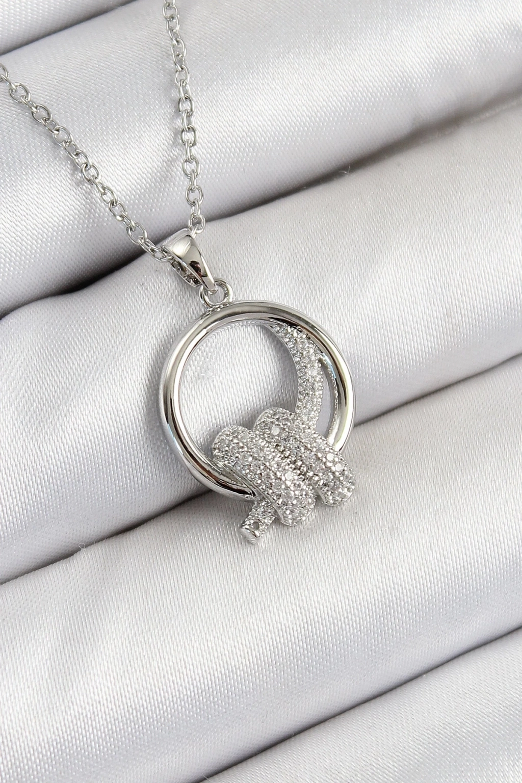 ÇOK SATAN 316L Çelik Zirkon Taşlı Düğüm Model Gümüş Renk Kadın Kolye