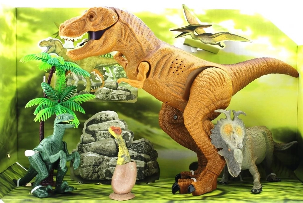 Dinozorun eklemleri hareketlidir . 18 cm boyundaki T-rex sesli ve ışıklıdır. Boynundan aşağı doğru bastırarak ses özelliğini harekete geçirebilirsiniz. Gözlerinde ışık mevcuttur