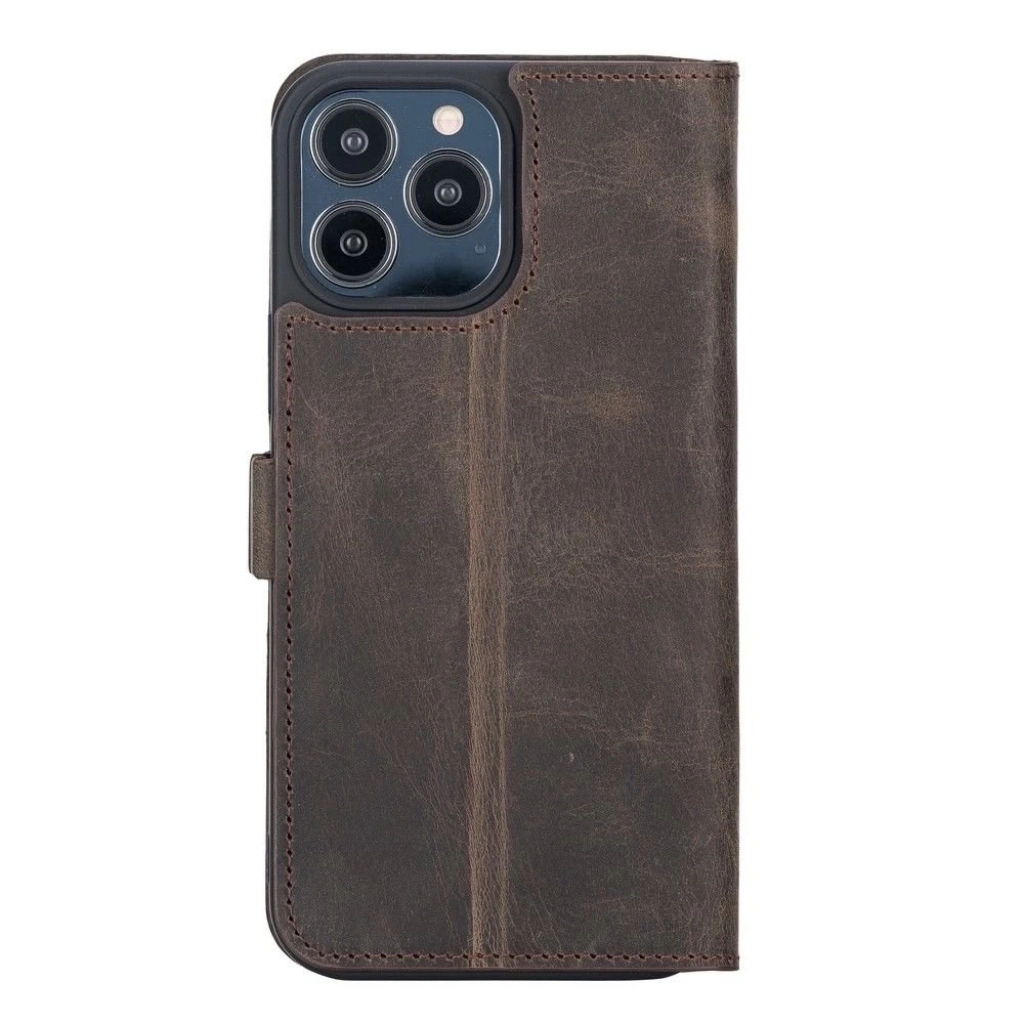 • Apple iPhone 13 Pro Max Uyumlu Deri Cüzdanlı Kılıf Acı Kahve