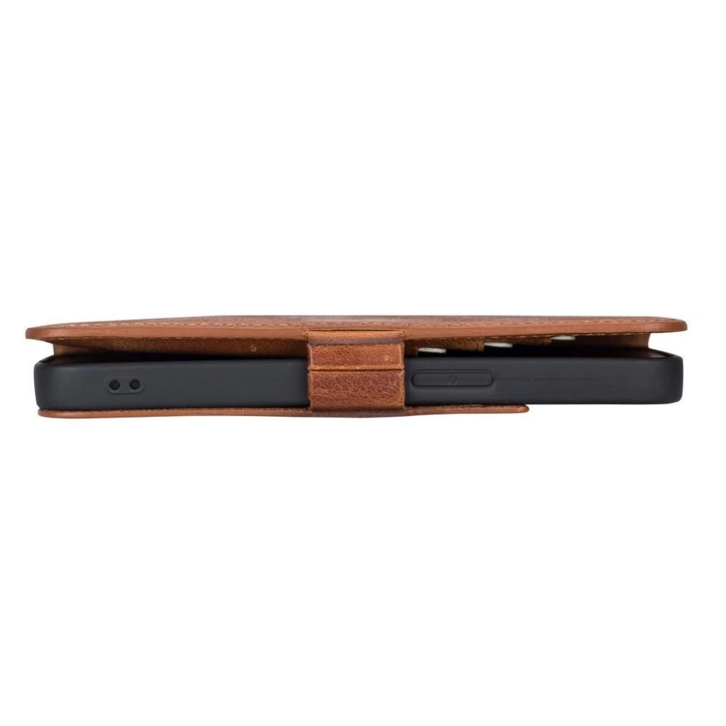• Apple iPhone 13 Uyumlu Deri Cüzdanlı Kılıf Karamel