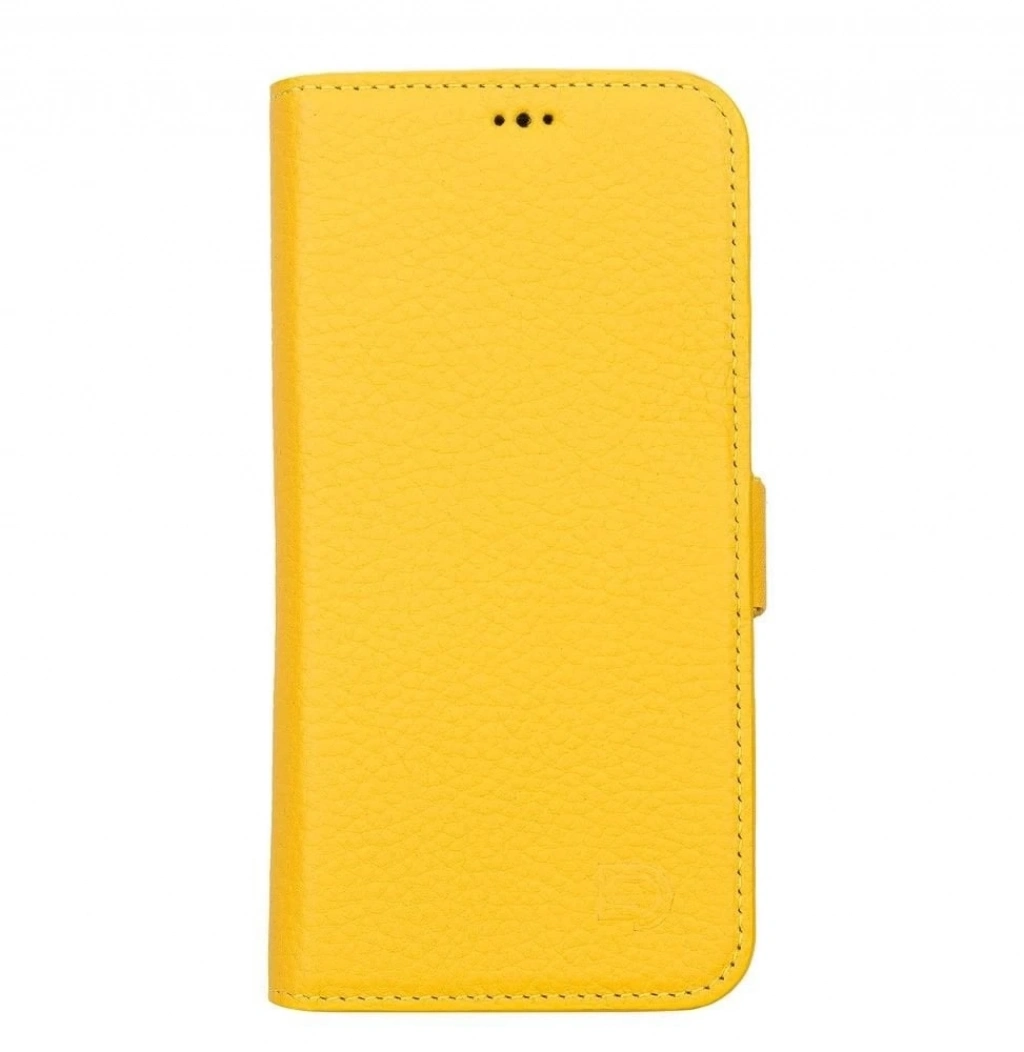 • Apple iPhone 13 Uyumlu Deri Cüzdanlı Kılıf Limon Sarı