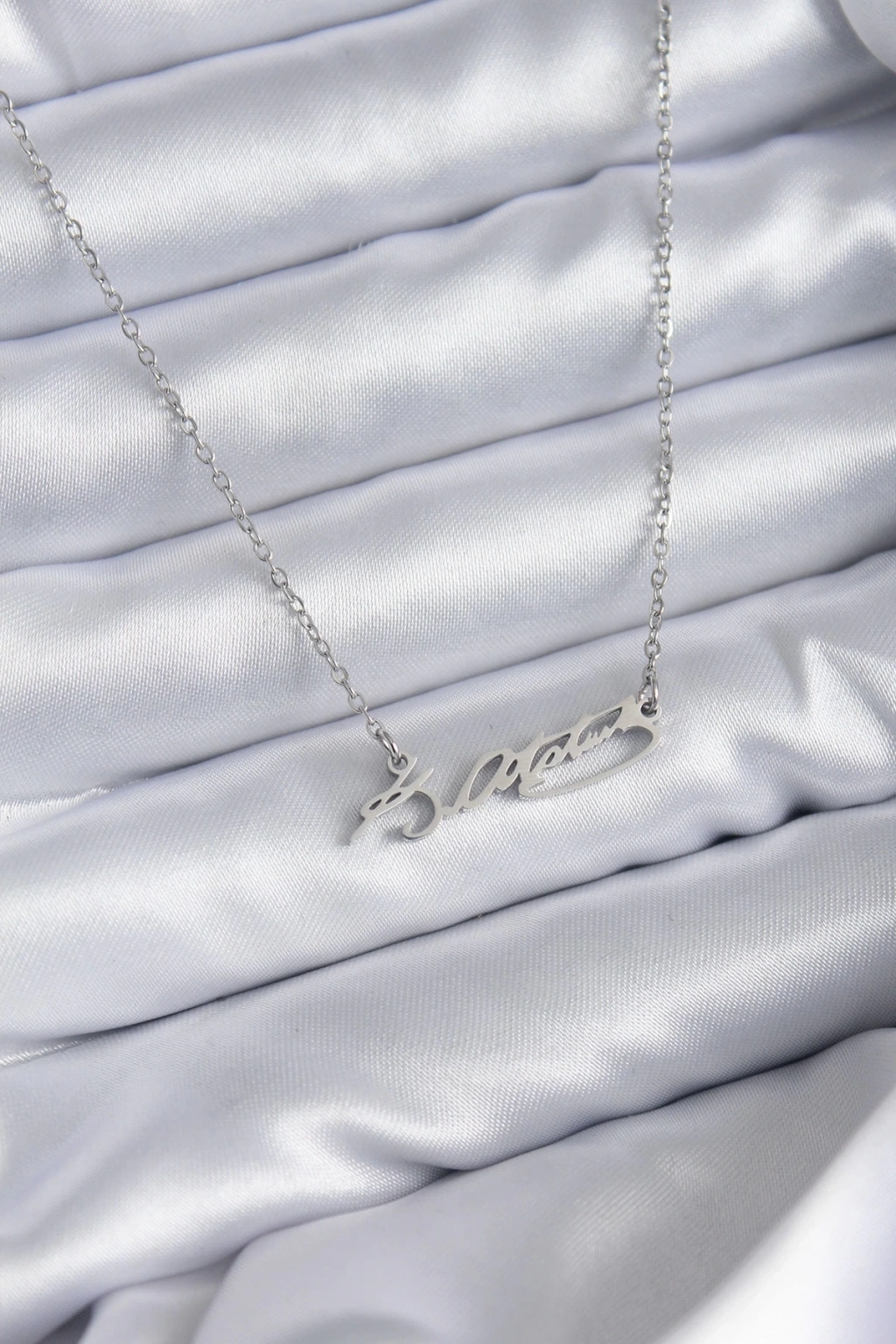 BFS 316L Çelik Zincir Gümüş Renk Atatürk İmza Figür Kadın Kolye
