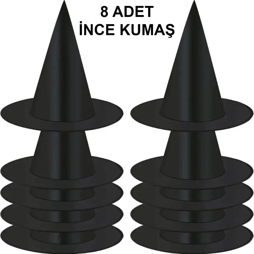 ÇOK SATAN BFS 8 Adet Siyah Cadı Şapkası – Yetişkin Çocuk Kostüm Aksesuarı