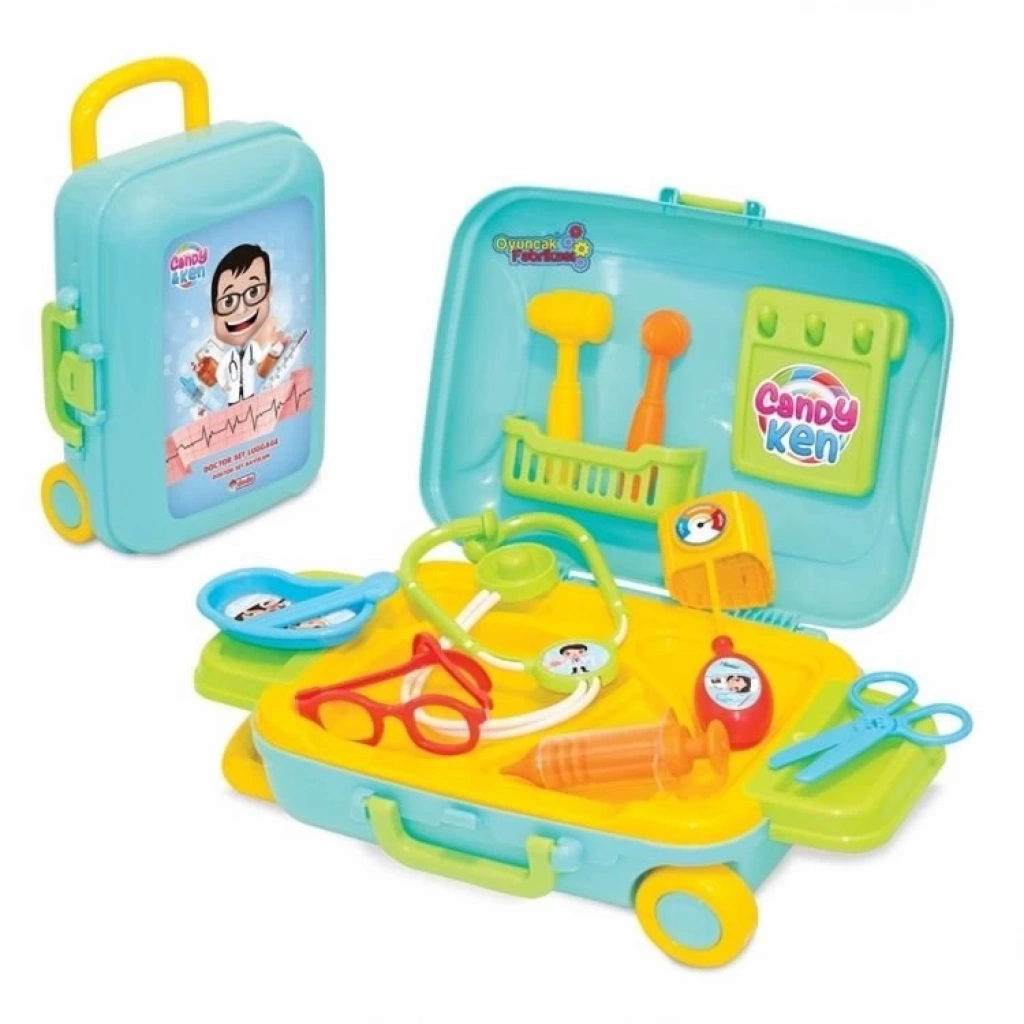 10 parçadan oluşan Candy doktor setinde bulunan tedavi malzemeleri ile